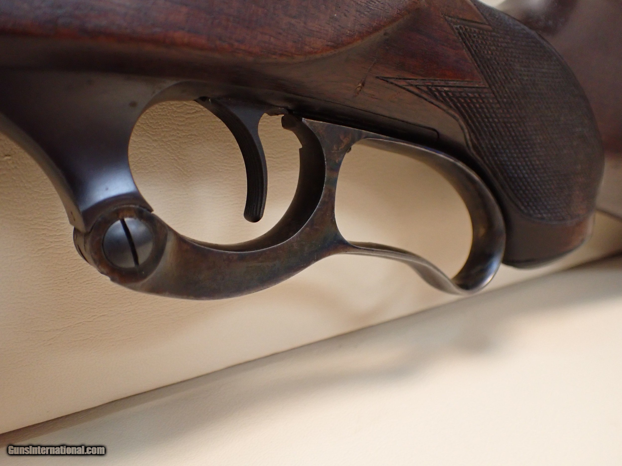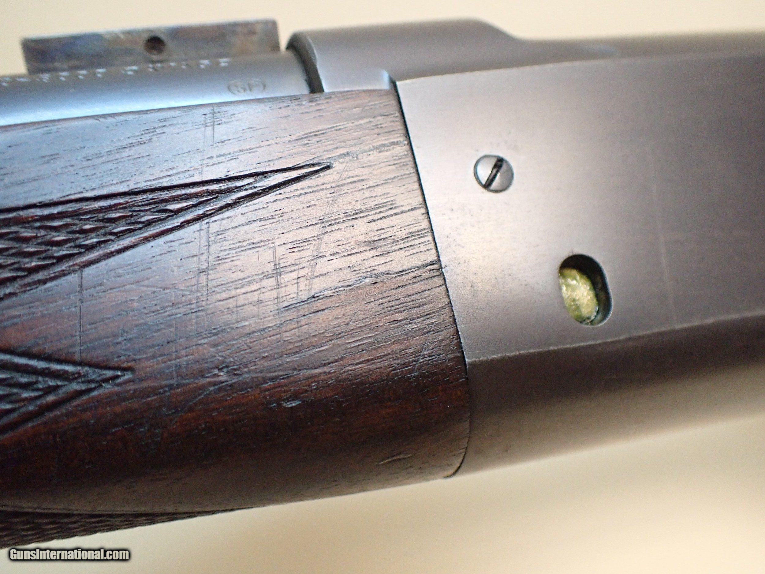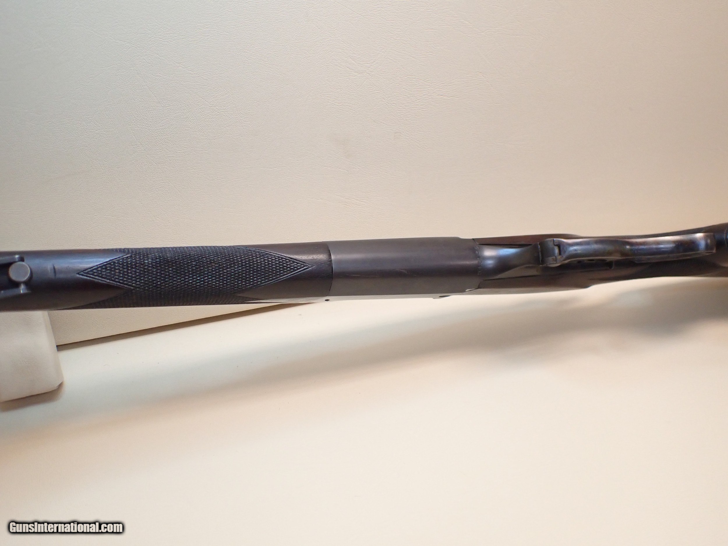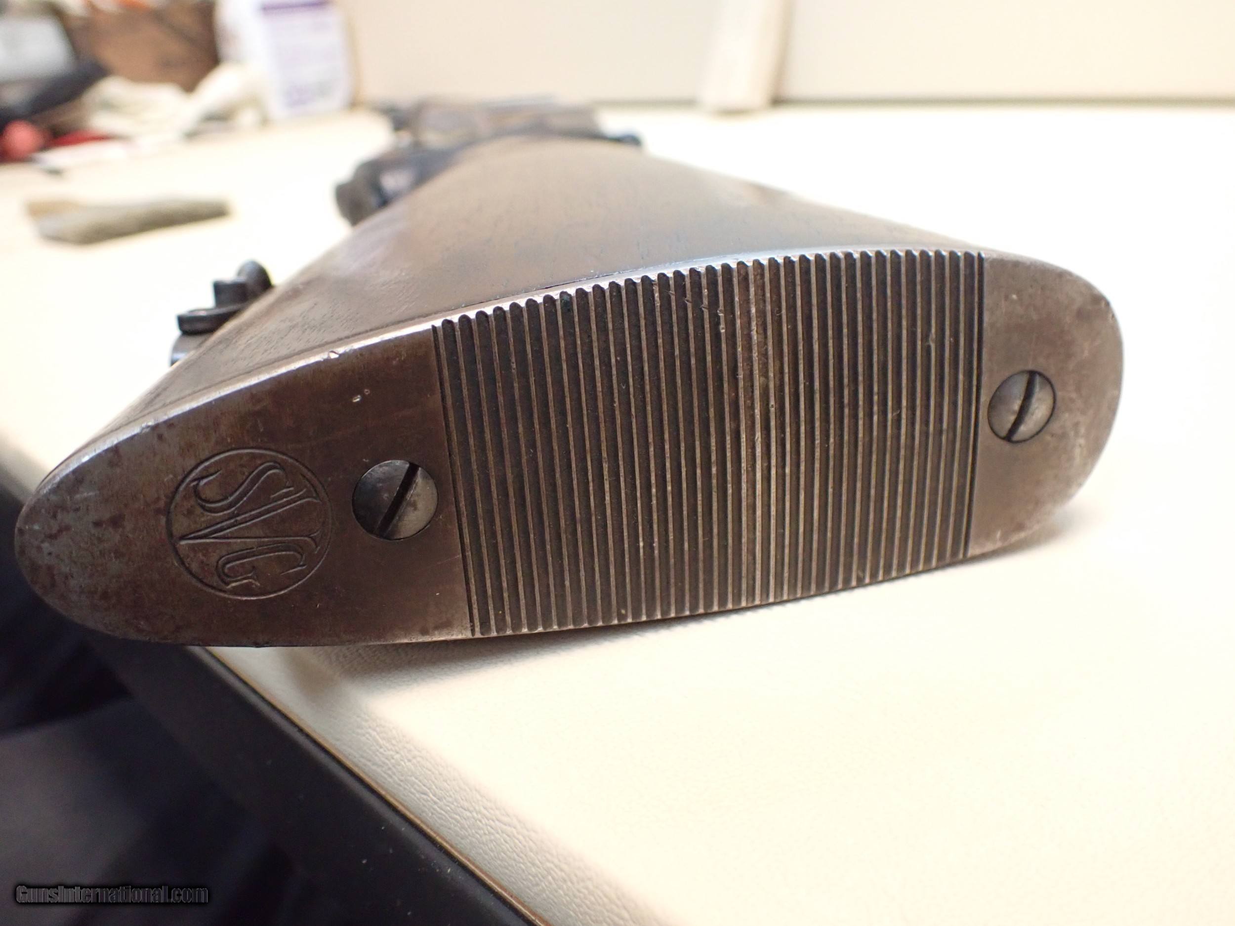 Description: ***SOLD*** Savage Model 99RS .250-3000 Savage lever action rifle dated to 1933, s/n 343XXX. This Model 99 falls into the Pre-War era, with its' 1933 manufacture date. This rifle features a fine cut checkered walnut stock and forend, with a rich blued finish on the receiver and barrel, in addition to a color-case hardened lever, and flet-bottomed sling studs with sling loops installed. The rifle is fitted with a Lyman tang sight with windage and elevation adustment, in addition to a Lyman front sight, a factory flip-up rear sight with two sight leaves, and two scope mounting blocks mounted directly to the barrel. The rifle is in great working order, with a smooth lever action mechanism, a bright bore, and light, crisp trigger pull. The rifle shows signs of normal/regular use and age, however it appears to have been well cared for over the years. Some small areas of finish loss can be seen in areas of the wood finish, as well as in areas of the receiver, where it may have been carried through the woods. The forend has a small repaired area on the right side, as well as a very small hairline crack by the receiver, as shown in the photos. Please refer to the photos to further assess the condition of the rifle. A beautiful old hunting rifle with lots of character, ready for years of service! C&R OK. SOLD Curio/Relic: Yes Manufacturer: Savage Model: 99RS Serial Number: 343165 Barrel Length: 22 Caliber Info: .250-3000 Manufacture Date: 1933 |
