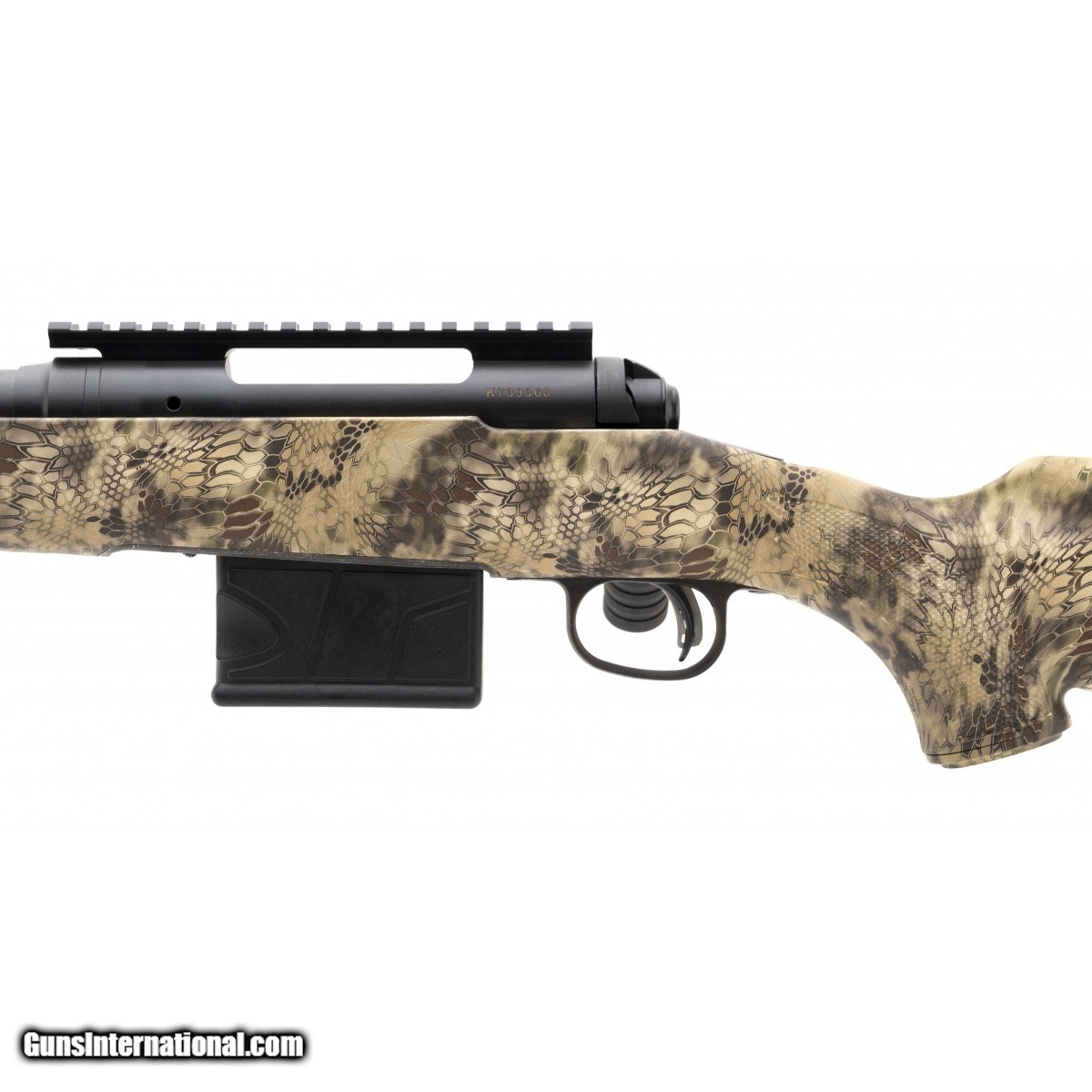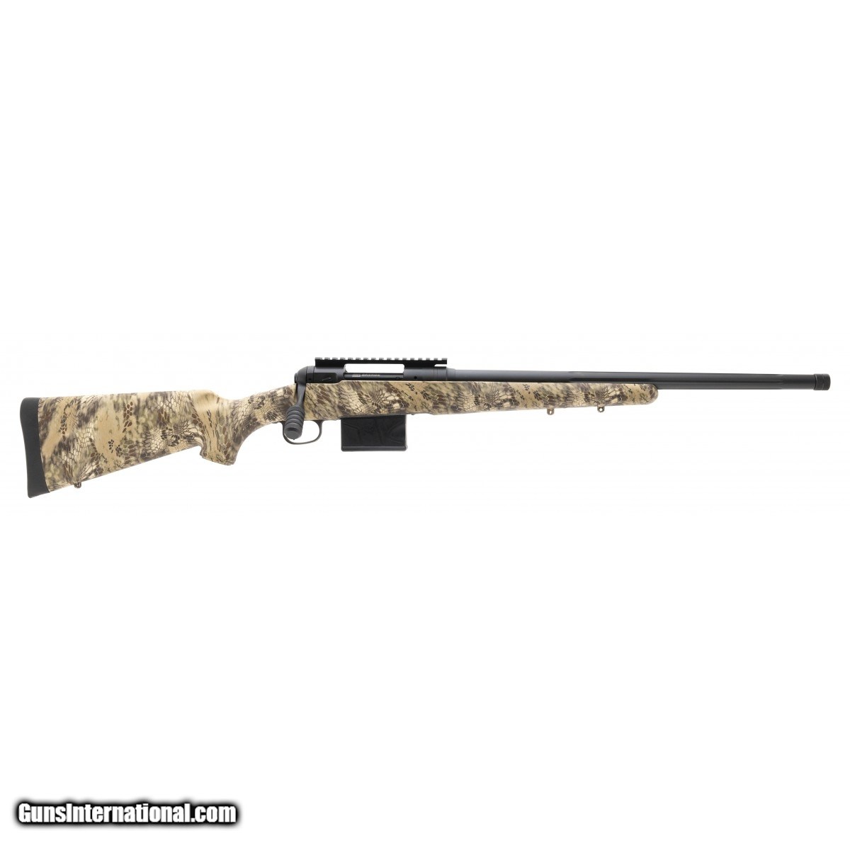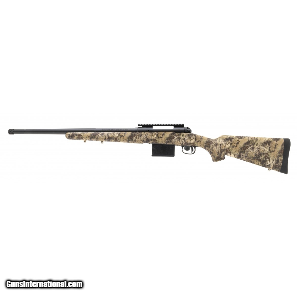 Magazine fed, bolt-action deer rifle with 20"" threaded and fluted barrel. The rifle has a camouflage synthetic stock and an optic rail. In overall excellent condition.
