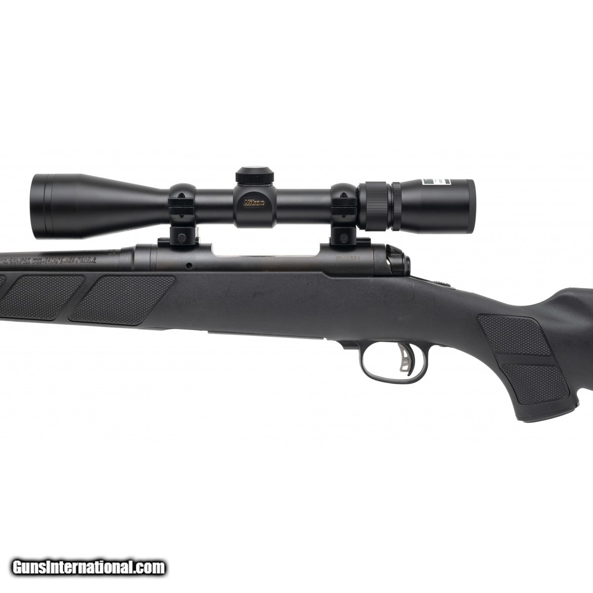SN: J045371. Modern production. Bolt-action rifle made by Savage. Great condition with light handling marks in the stock. 22"" barrel chambered for .308 Winchester. 13.75"" length of pull including three-quarter inch buttpad. Great condition with light handling marks in the stock. Bore is excellent. Features jeweled bolt body and Accu-Trigger system with adjustable pull weight. Comes with mounted Nikon BDC 3-9x40 scope.