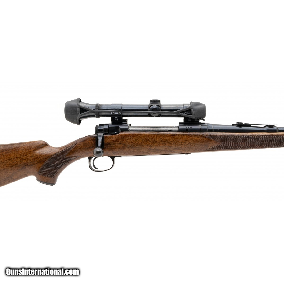SN:6188: Manufactured Circa 1958-1963, 30-06Springfield with a 22"" barrel. Bore is in excellent condition. Bolt action rifle with checkered wooden stock, adjustable folding rear sight, Weaver K3 scope and 13.5"" LOP. Overall condition is very good.
