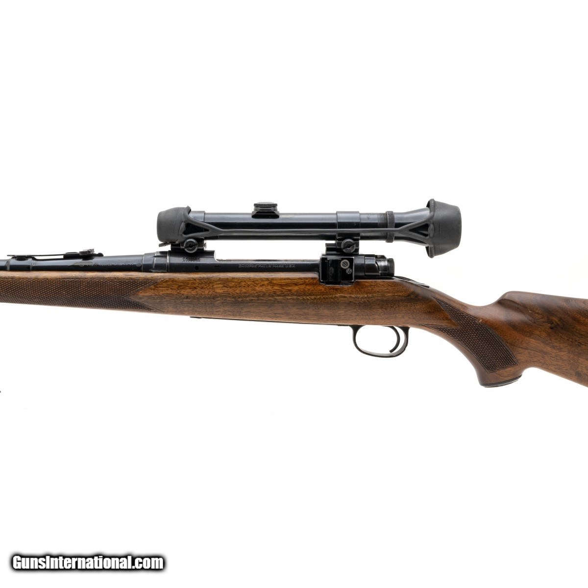 Description: " SN:6188: Manufactured Circa 1958-1963, 30-06Springfield with a 22"" barrel. Bore is in excellent condition. Bolt action rifle with checkered wooden stock, adjustable folding rear sight, Weaver K3 scope and 13.5"" LOP. Overall condition is very good. SOLD |