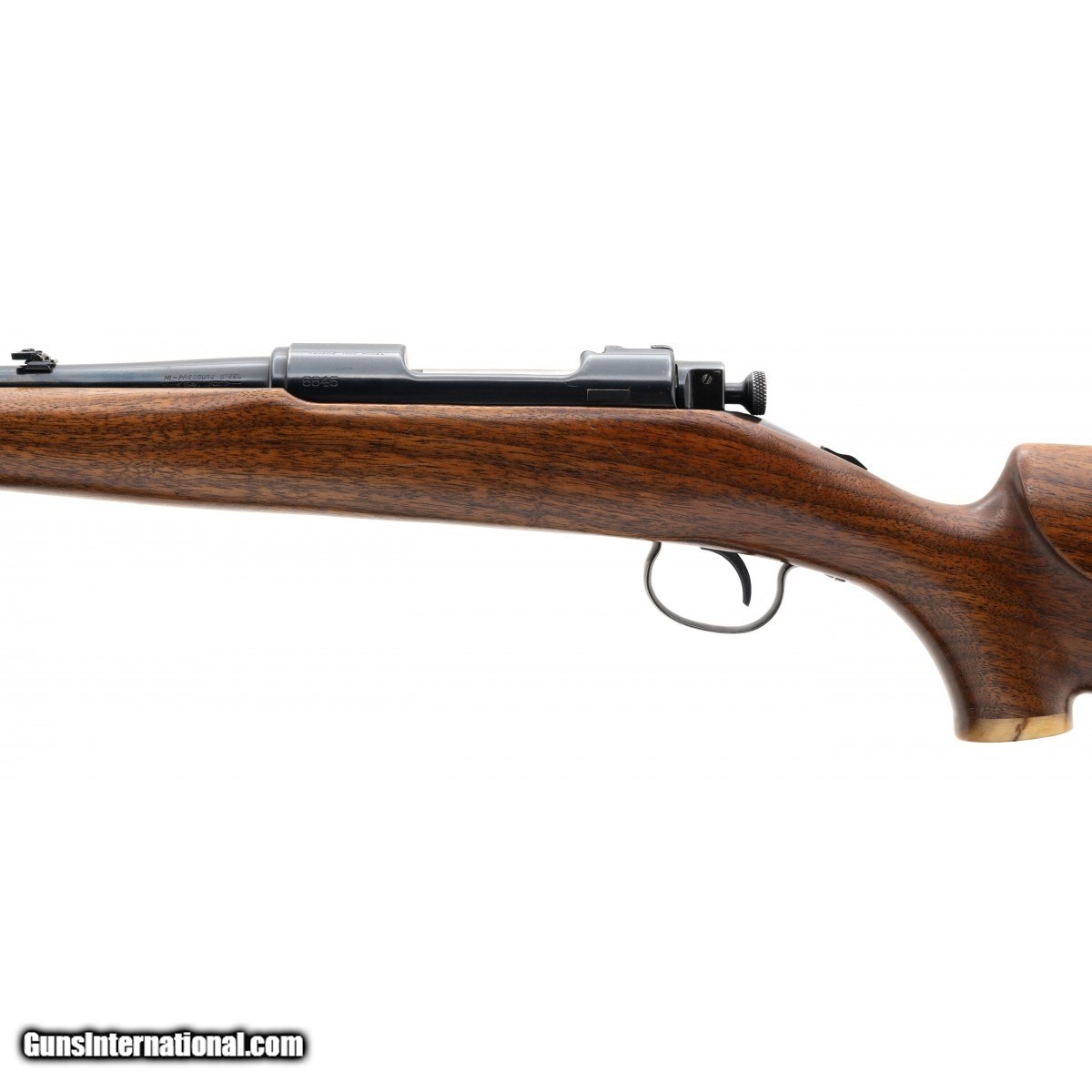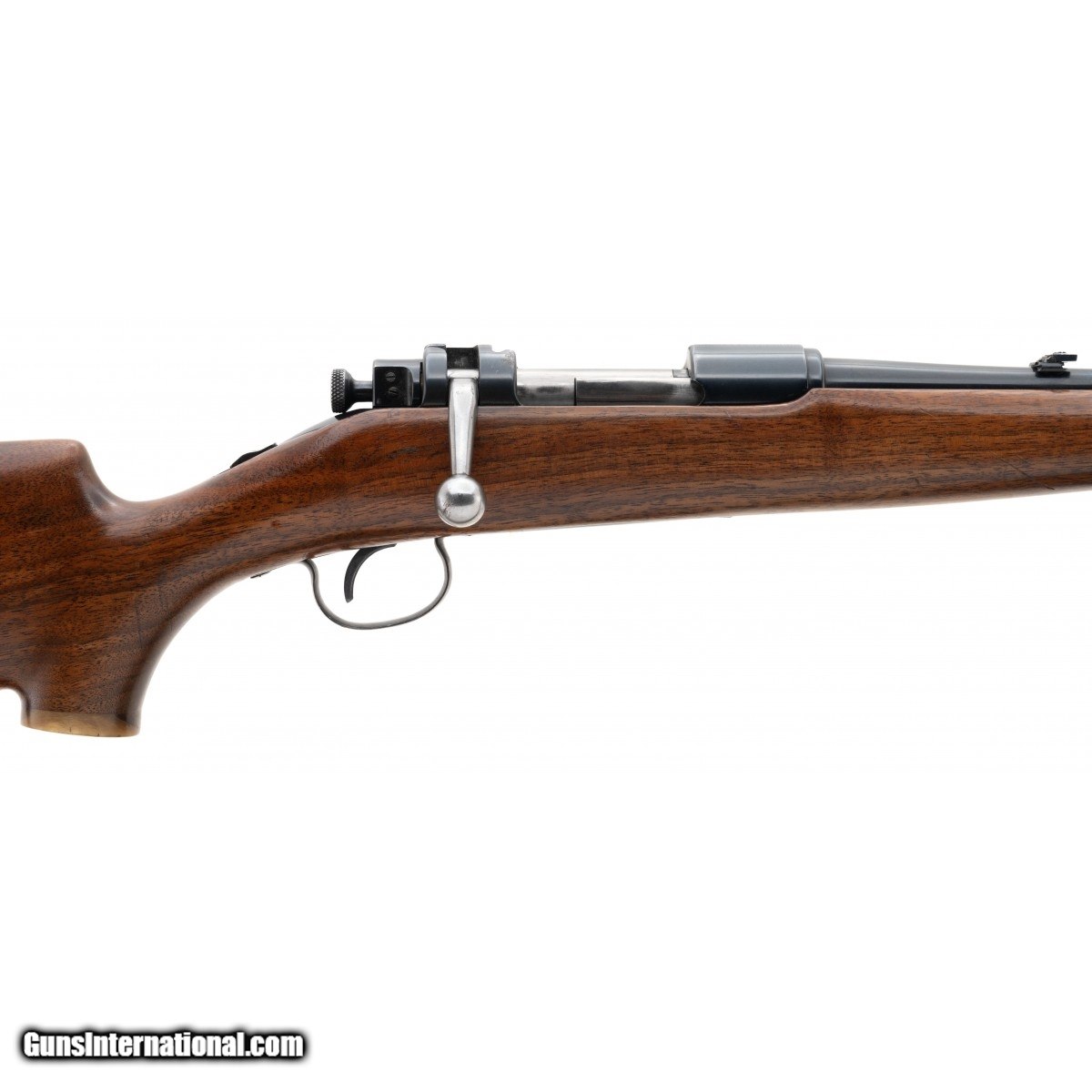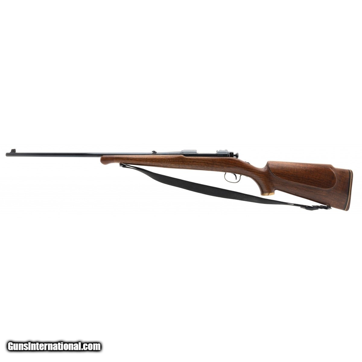 Description: " SN: 6645. Circa 1920s. .300 Savage with a 24"" barrel, bore is excellent. Bolt action rifle with folding leaf rear sight, gold bead front sight and custom walnut stock. Overall very good condition with some light wear on wood. Comes with sling. SOLD |