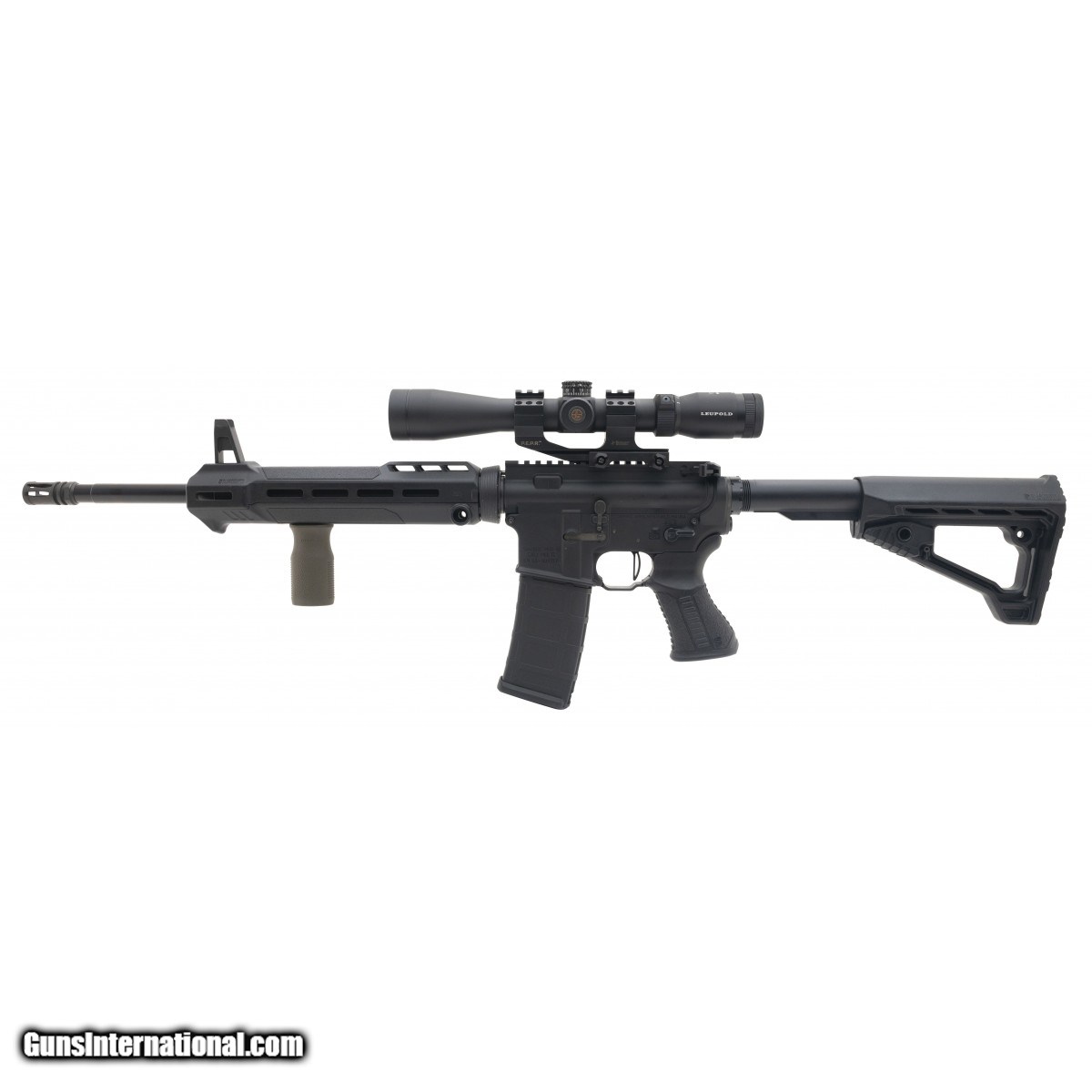 Description: " SN:03-000717. Modern production, 5.56x45mm NATO, 16"" barrel. Tactical rifle build with a 16"" barrel, a Vltor A5 buffer system, a Sons of Liberty BCG, Forward Controls Design ASF-90 safety, Forward Controls Design castle nut, Larue MBT-2S Straight Bow trigger and Leupold VX R Patrol 3-9x scope. Overall in excellent condition. SOLD |