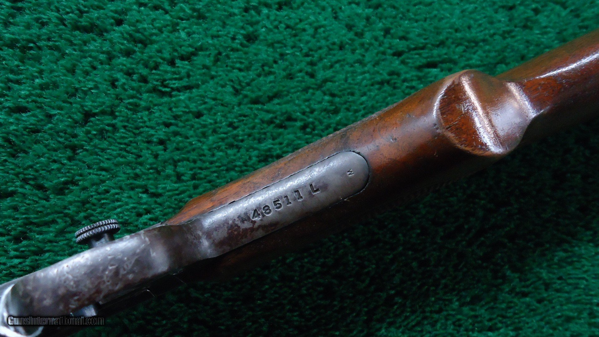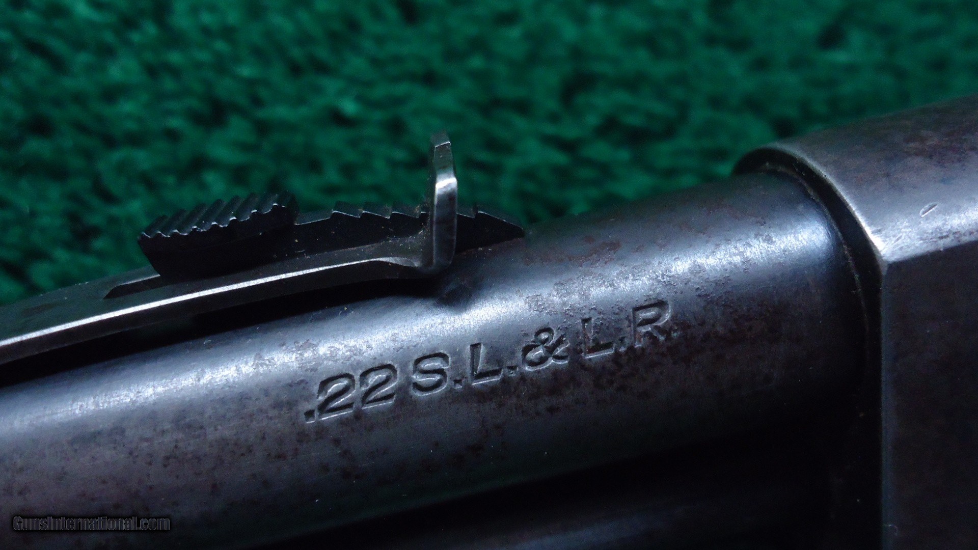 Description: 24 inch round barrel with a very good bore. Overall metal has worn and toned to brown/grey with traces of blue in protected areas. Good markings. Crisp action. The checkered walnut pistolgrip buttstock and forend are in good condition with finish wear on the high edges and contact points. Hairline cracks on both sides of the forend off the attachment screw. Some wear and dings on the left side of the wrist as well as the usual handling mars overall. Hard rubber buttplate. Leroy Merz Antique Firearms specializes in antique and vintage Winchesters and other fine American firearms. Since 1965 Mr. Merz has taken part in the world of firearms and has been a contributor to many well known reference books. We have hundreds of additional guns in every price range at our home online. Search for Merz Antiques in google. SOLD Curio/Relic: Yes Rifle Caliber: .22 Long Rifle |
