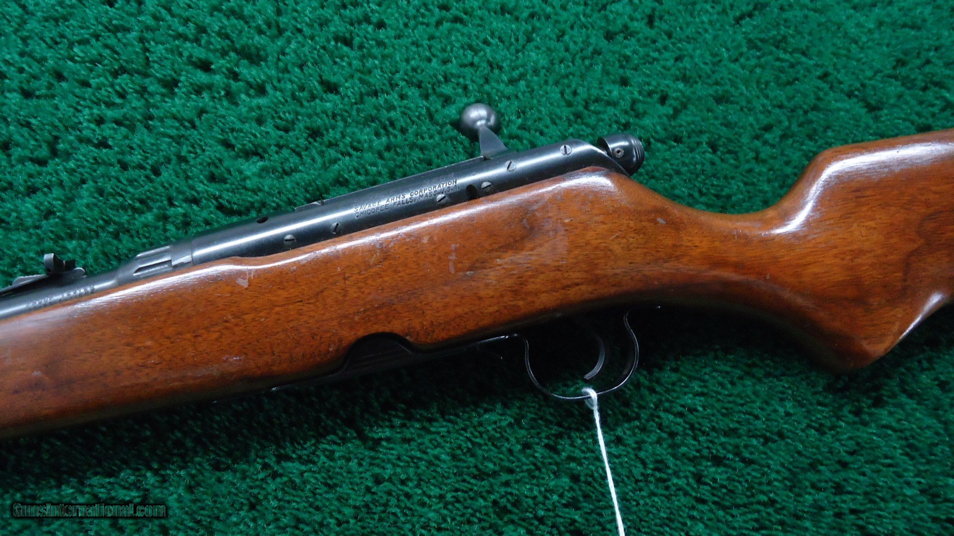 Description: The Savage 340 series rifles are tough guns. Savage made them after WW-2, using machine gun barrels left over from wartime production. Metal retains about 95% original bright blue. 22 inch round barrel chambered in 30-30 caliber with an excellent bore. Original open sights. Tapped on the side for a scope. Detachable magazine. Wood is in very good condition with most original varnish and just a few handling mars. Excellent deer rifle. Scarce gun. Leroy Merz Antique Firearms specializes in antique and vintage Winchesters and other fine American firearms. Since 1965 Mr. Merz has taken part in the world of firearms and has been a contributor to many well known reference books. We have hundreds of additional guns in every price range at our home online. Search for Merz Antiques in google. SOLD Curio/Relic: Yes Rifle Caliber: .30-30 Winchester |