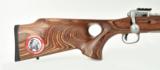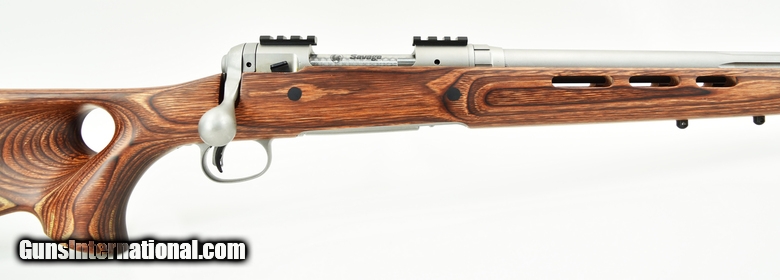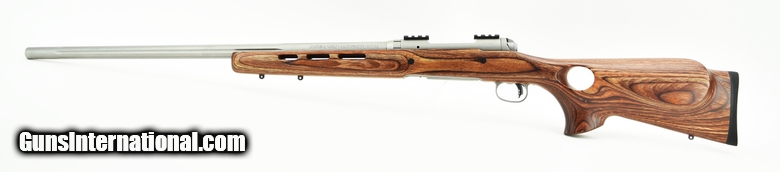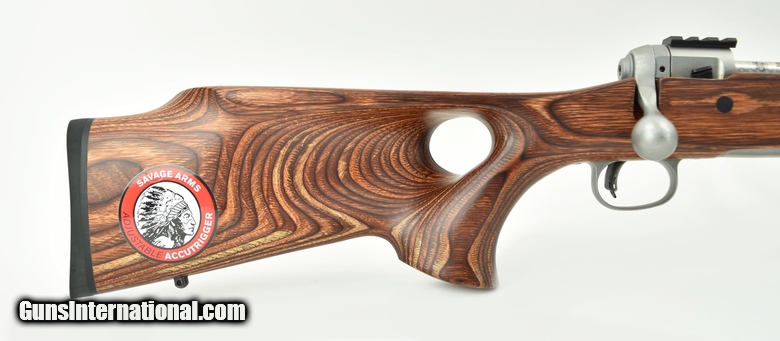Description: Savage 12 .223 Rem caliber rifle. Stainless fluted varmint/target rifle with laminated thumbhole stock in excellent condition.