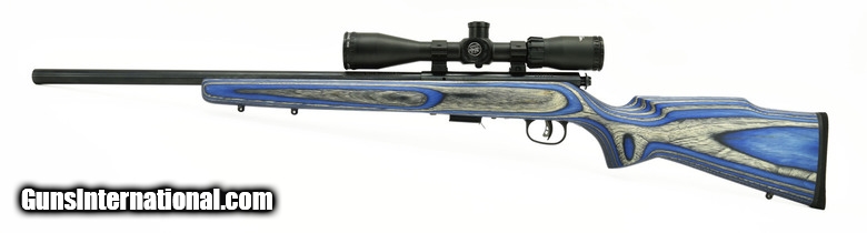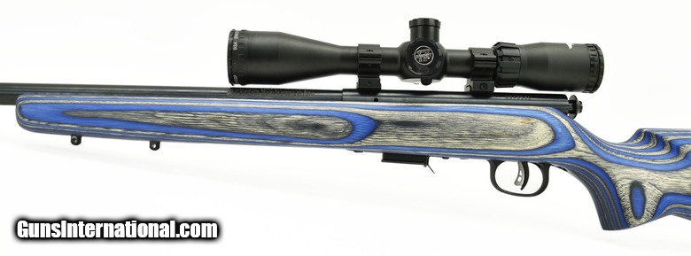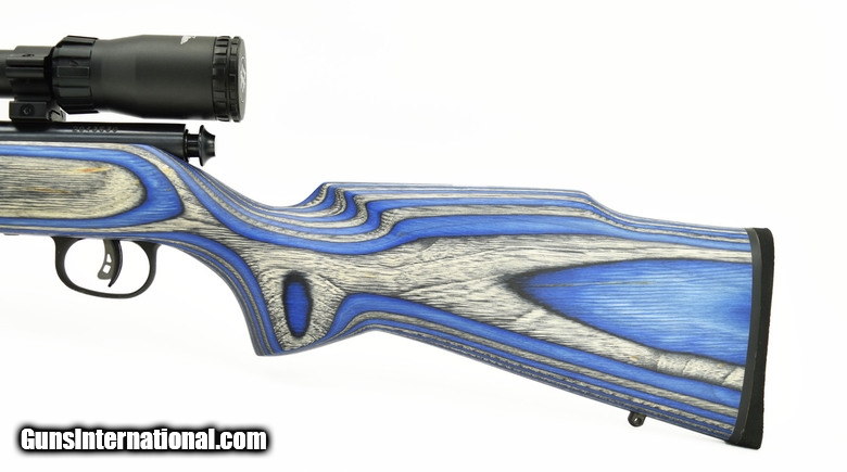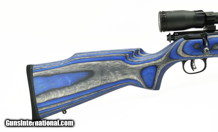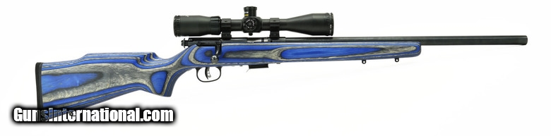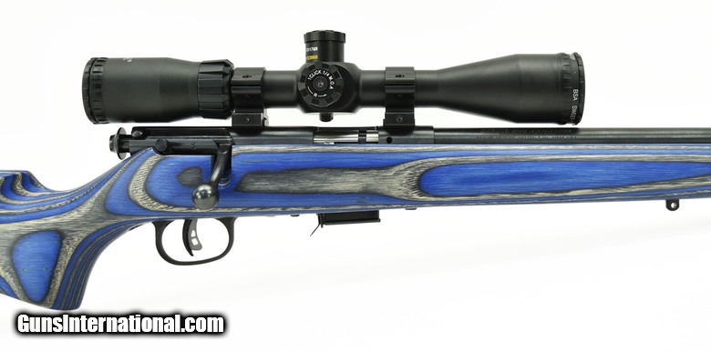 Savage 93R17 .17HMR caliber rifle. Heavy barrel Varmint model with laminated stock and BSA 3x12 scope. It is in excellent condition.