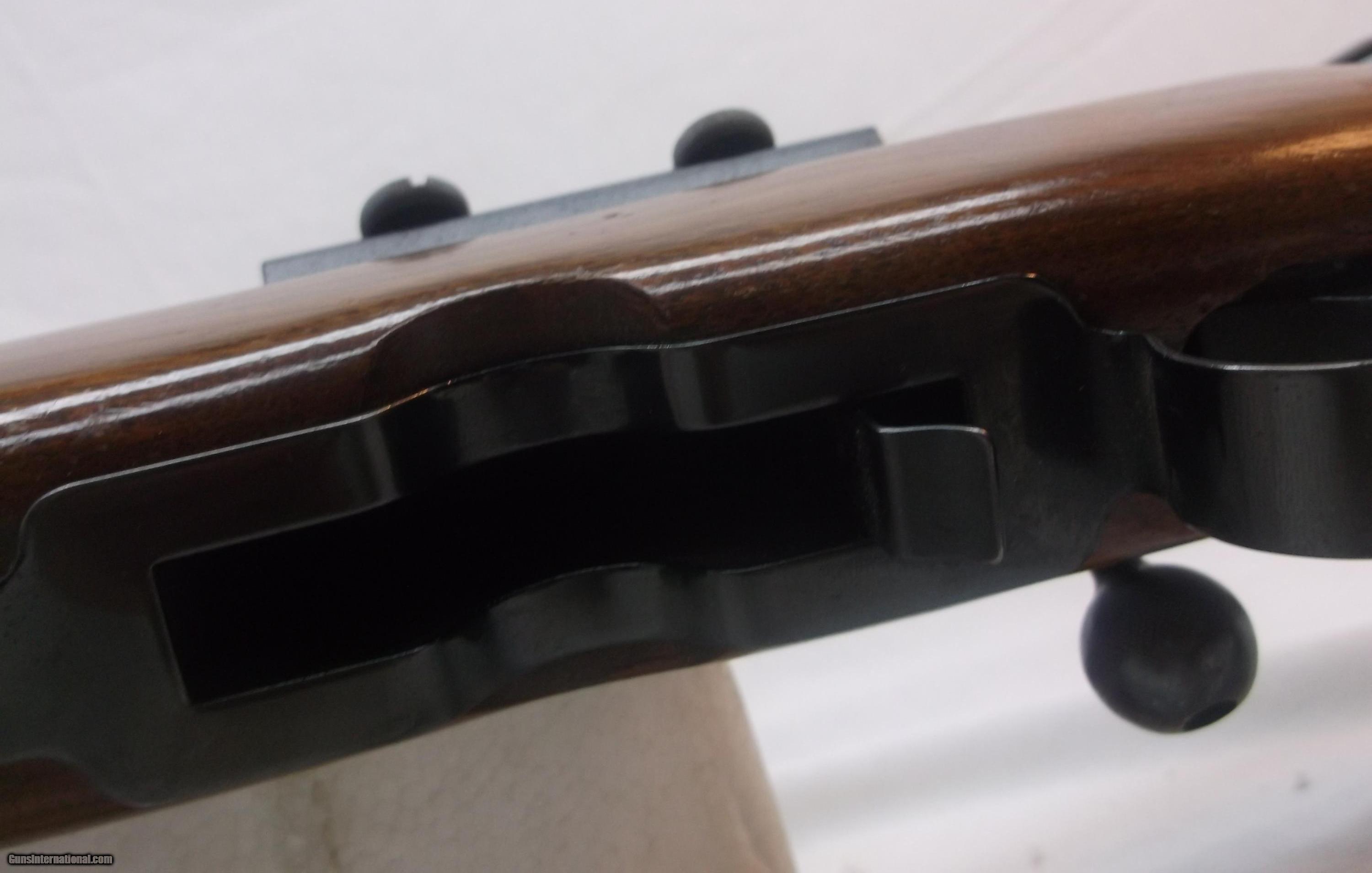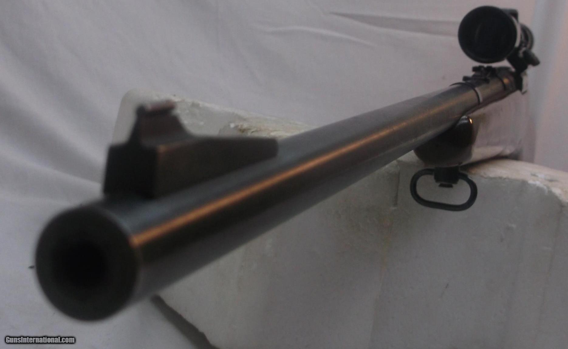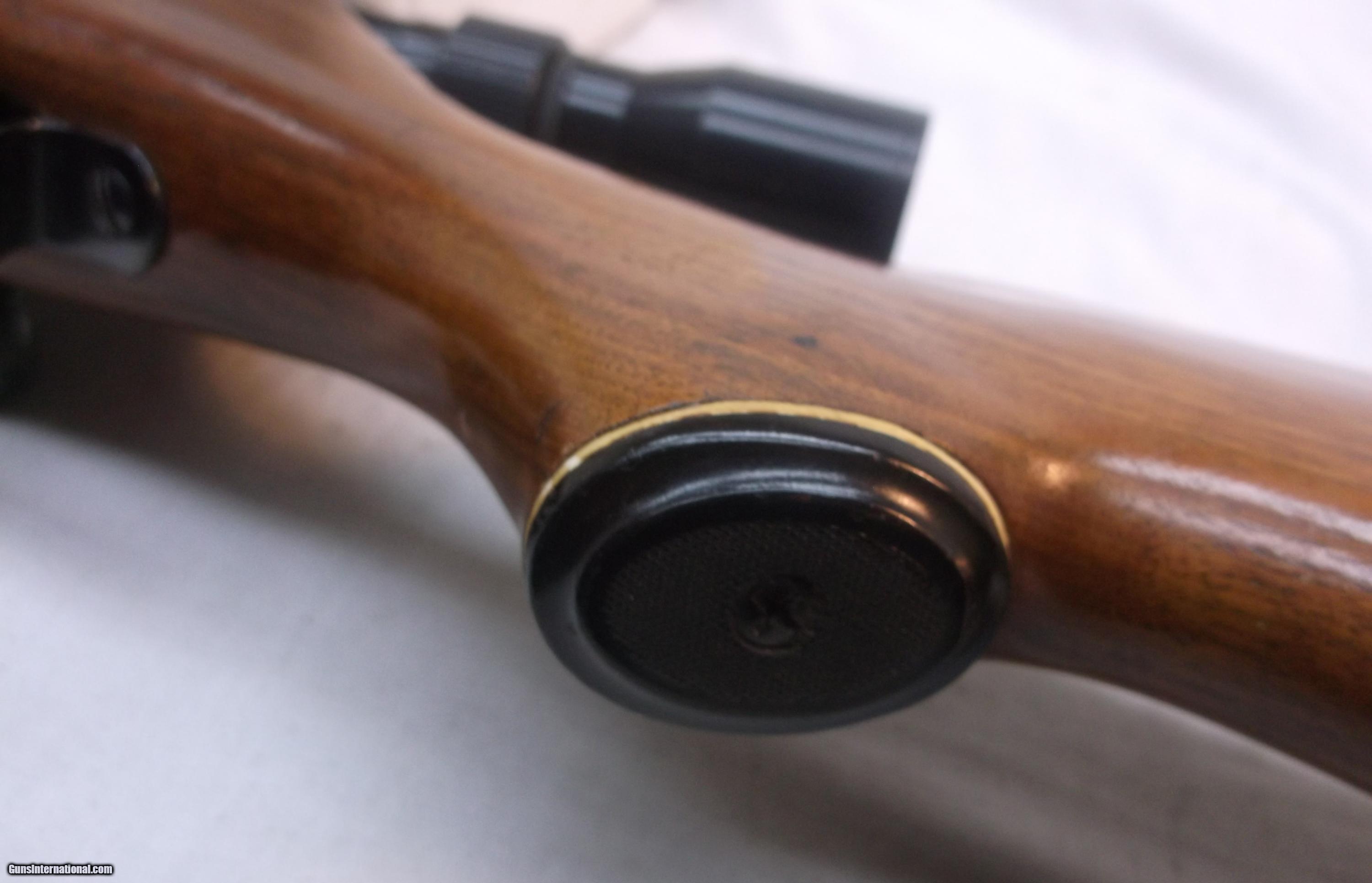Description: This Model 340D 222 Remington bolt-action rifle has a tapered round 24" blued barrel. Fitted to the barrel is a bead front sight and an adjustable buckhorn rear sight with windage and elevation. Features Western Field 3.5-9x scope mounted on Weaver scope mounts. Scope is in poor condition with blemishes on the crosshairs. Comes with leather lens covers. Stamped on the left side of the barrel is SAVAGE Savage Arms Corporation Westfield Mass USA Proof Tested Cal 222 Rem Model 340D. Bore condition is excellent. The P grade Walnut pistol grip butt stock and forestock are in good condition asides from a few minor scratches. Fitted to the pistol grip is a black plastic pistol grip cap. Butt stock features red rubber Red Head recoil pad. On the pad is Red Head Brand Chicago. Finish is starting to lift where the butt pad meets the butt stock. Length of pull is 14-1/2". Feautures sling swivel mounts. Good wood to metal fit - made by Savage Arms Co. Condition: Good. Our stock number is: A198. Will ship anywhere in the USA to your FFL, buyer pays freight and insurance charges. The Gun Works is a muzzle loading specialty shop located in Springfield Oregon. SOLD Manufacturer: Savage Arms Model: Model 340D Serial Number: 1XXXX4 Caliber Info: 222 Rem Bore Condition: Excellent Barrels: 1 Barrel Type: Round Action: Bolt-Action Triggers: 1 |