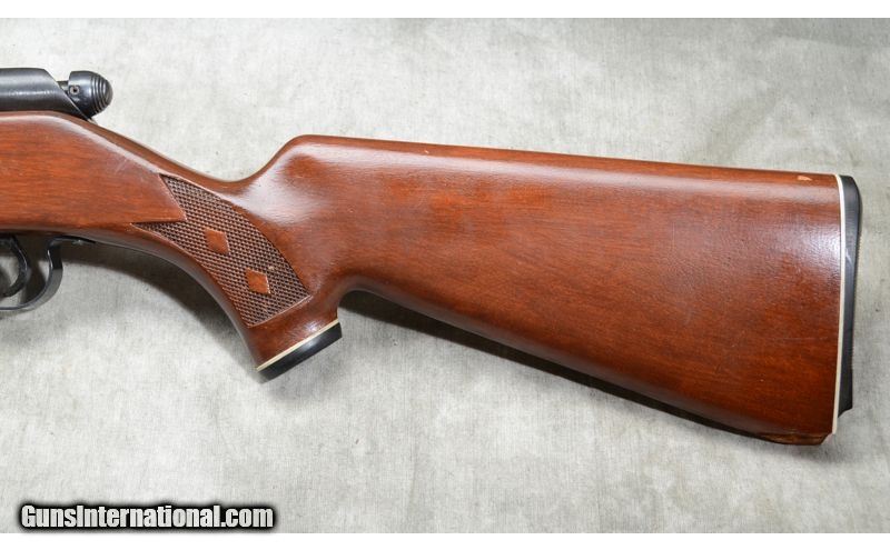 Description: A nice little rifle that with a little TLC would make a great little "garden gun" for pest control or a trainer as the first centerfire for the new shooter. .222 Remington SOLD Chambers: 5 - round detachable magazine. Metal Condition: Good. There is a small amount of rust/pitting. Nothing unusual. Wood Condition: Good overall. There is a chip missing from the toe. Bore Condition: Shiny and bright with good rifling. Barrels: 24 - inch. Triggers: Factory trigger. Stock Dimensions: 13-5/8 inch LOP. Butt Pad: Black plastic. Weight: 7 lb - 10 oz Sights: Bead and notch open sights. Drilled and tapped for scope. Item Location: Rogers |