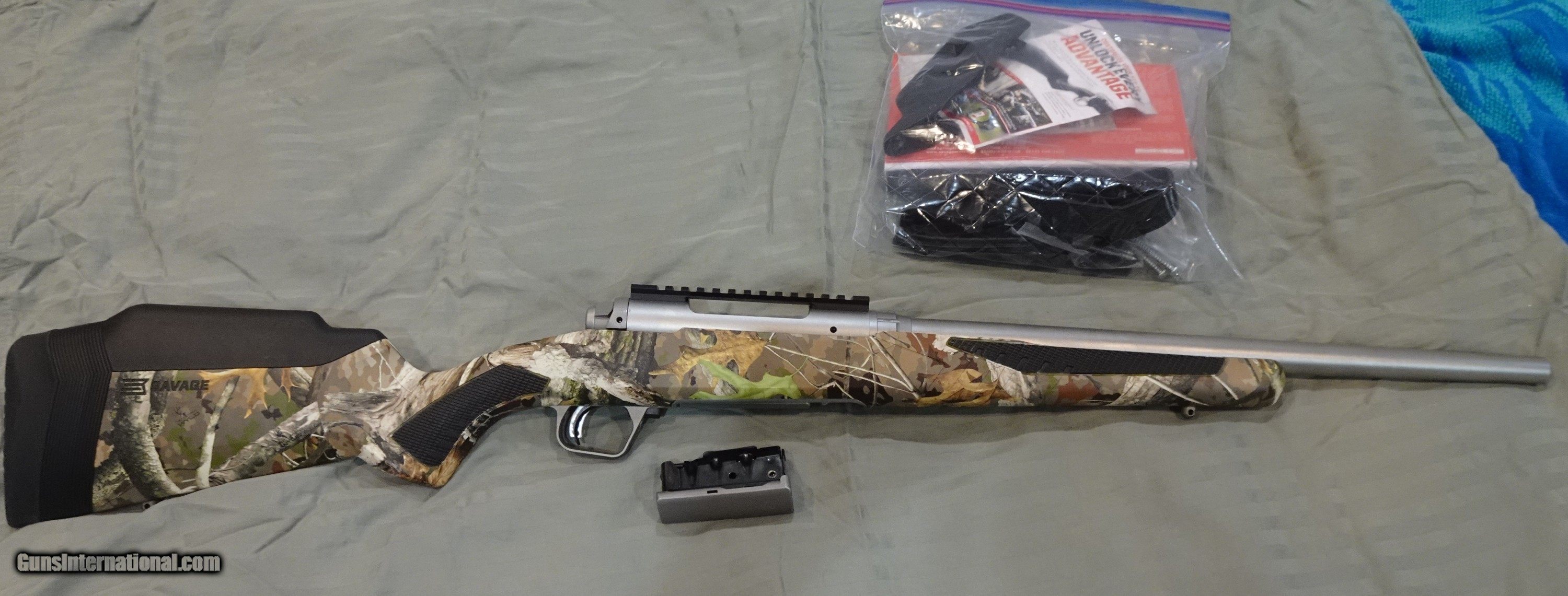 Description: Custom Savage 110 Storm in 350 Legend. Savage 110 Storm model, all stainless steel. Stock was professionally hydro dipped in Next WYLD camo with an automotive matte clear protective clearcoat. Barrel is made by X-Caliber. 18" barrel, 416R stainless steel, Savage magnum contour, recessed target crown, 1:16 twist rate, matte blasted finish to match action. Stainless steel barrel nut and barrel lug by Hank's Precision. 7666M Warne Savage Tactical Mountain Tech scope rail. Extra magazine with matching stainless steel floorplate. This gun is incredibly accurate. After I had it built, I scoped it and test fired it at the range. 4 shots all grouped inside of a 1" target dot at 100 yards. Never did hunt with it. Only reason I am selling is downsizing my collection a little bit. Rifle has only been fired less than 20 rounds. Includes factory paperwork and owner's manual, as well as all the stock adjustment shims and combs for the Accustock. Shipping: $40 UPS insured SOLD Rifle Caliber: .350 Legend Manufacturer: Savage Model: 110 Storm Barrel Length: 18 Bore: As new Chambers: As new Condition: As new Metal Condition: As new Wood Condition: Synthetic- as new Bore Condition: As new Barrel Type: Stainless Match Grade Triggers: Factory Stock: Synthetic Stock Dimensions: Adjustable Stock Comb: Adjustable LOP: Adjustable Finish: Stainless Weight: 8 Sights: No sights Item Location: Michigan |