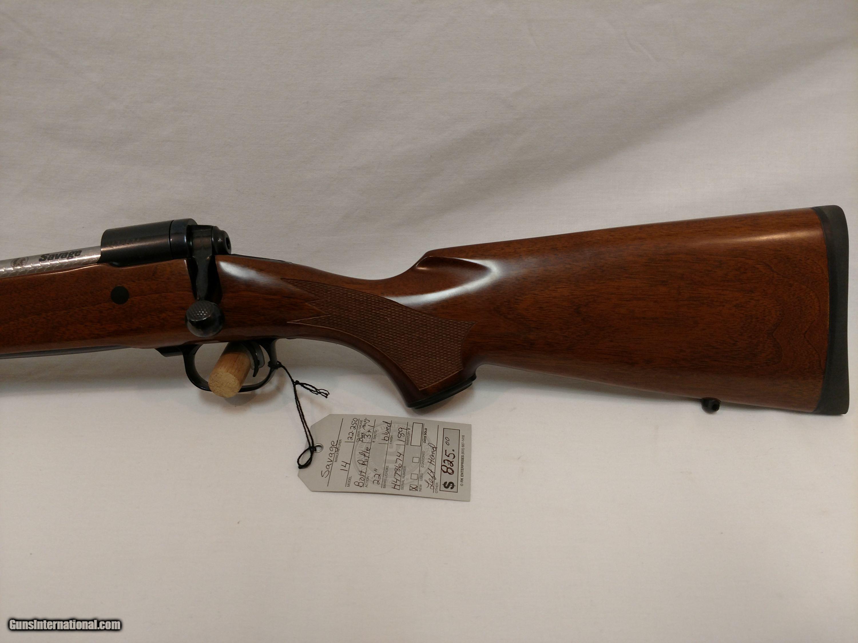 Description: NEW IN BOX Savage 14 Left-Handed .22-250 Blued Bolt action rifle. 3+ 1 Detachable clip. Firearms are shipped to FFL Dealers ONLY SOLD Manufacturer: Savage Model: 14 Serial Number: H478674 Caliber Info: .22-250 Condition: New Metal Condition: New Wood Condition: New. ONLY ONE Nick, on the bottom of the foregrip. Pictured. Bore Condition: Very good Barrels: 22 Action: Bold Triggers: Standard Stock: Checkered walnut with sling studs Fore End: Checkered walnut Butt Pad: Rubber Finish: Blue Sights: Drilled and tapped for scope Extras: New in box Item Location: Thorp, Wi. |