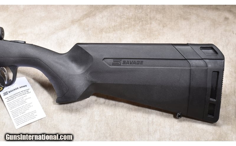 Description: Nice everyday rifle for range and field, chambered in .22-250 for targets and pest control. It features low maintenance black synthetic stock, black metal finish, and that famous Savage-quality barrel. It is part of a Special Buy from Savage and is factory fresh. .22-250 Remington SOLD Chambers: 5 rounds Metal Condition: ASNIB. Wood Condition: ASNIB. Bore Condition: ASNIB. Barrels: 22 inches Triggers: Factory trigger Stock Dimensions: "LOP: 13-1/2 inches, 12-1/2 inches by removing the 1-inch spacer. Butt Pad: Thick and soft recoil pad. Weight: 6 lb - 5 oz Sights: Drilled and tapped for scope. Item Location: Rogers |
