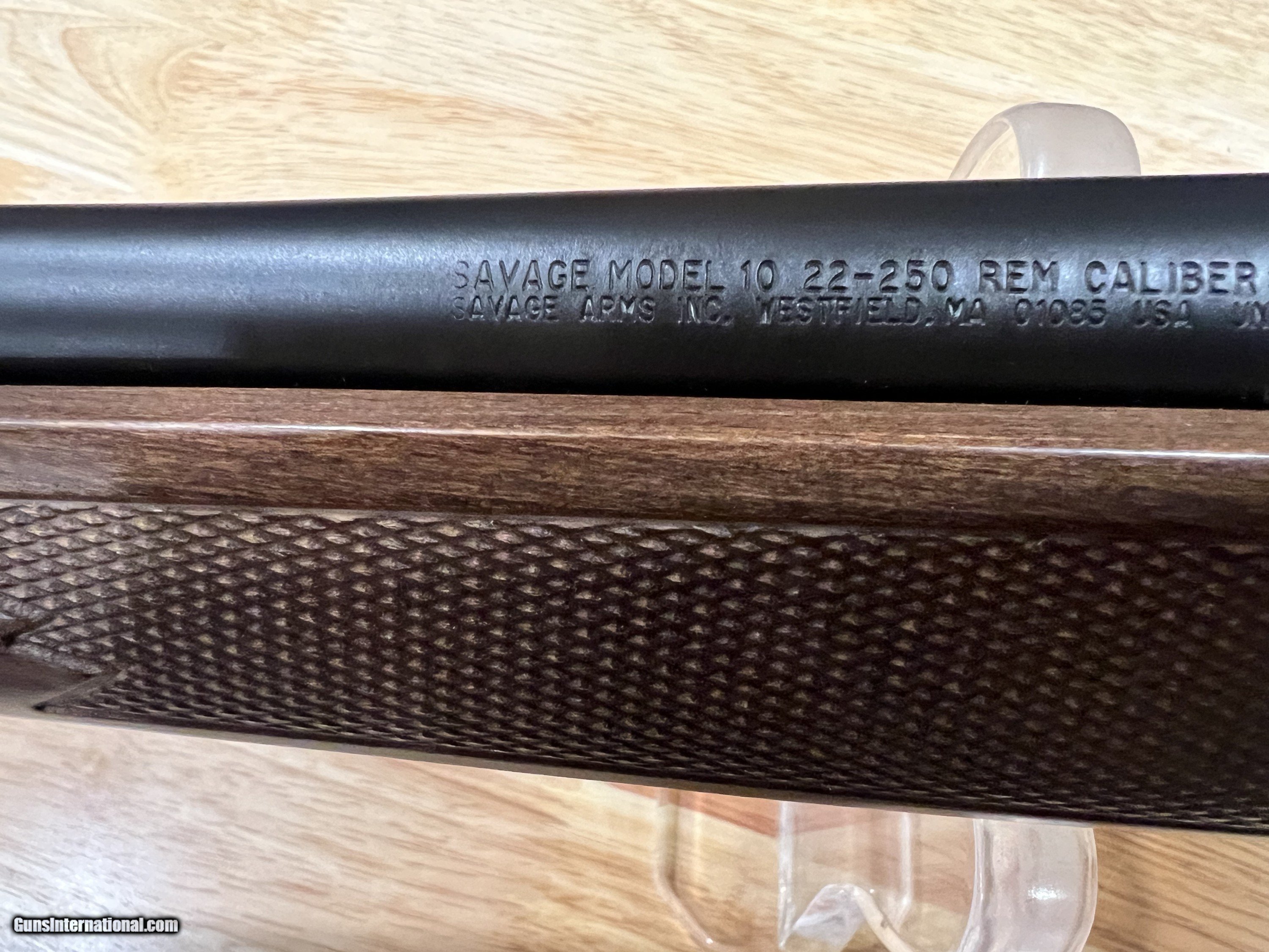 Description: Here's a nice Savage 10 22-250, 22" barrel, no sights, with bases, hardwood stock with original pad, one small mark on the left side of the stock as pictured, the rest of the rifle appears to be new and unfired but sorry no box. 75.00 UPS shipping 2.99% credit card fee PA residents add 6% sales tax. Rifle Caliber: .22-250 Remington Price: $595.00 Contact Seller |