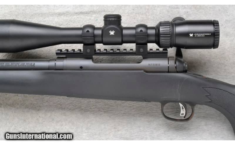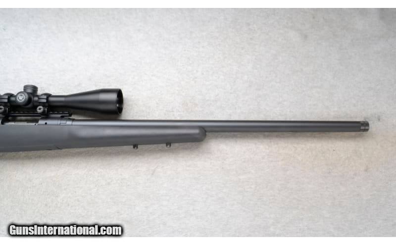 Description: This Savage Model 10 is a right hand bolt action rifle in 6.5mm Creedmoor Cal. It has a 24 inch heavy threaded end barrel. It is outfitted with a Vortex Crossfire 4-12x44 Scope. It has an oversize bolt handle and the Savage AccuTrigger. The butt stock is a checkered grip black polymer pistol grip with a black cap. The forearm is a smooth grip black polymer. 6.5 Creedmoor SOLD Metal Condition: Very Good. The receiver and trigger guard have a very fine rust on them. Bore Condition: Excellent. Barrels: 24 inch heavy threaded barrel. Triggers: Savage AccuTrigger. Stock Dimensions: LOP 13 3/4 inches. Fore End: Smooth grip black polymer. Butt Pad: Black rubber recoil pad. Weight: 10 lb. 0 oz. Sights: Vortex Crossfire 4-12x44 Scope. Item Location: Richfield, WI |