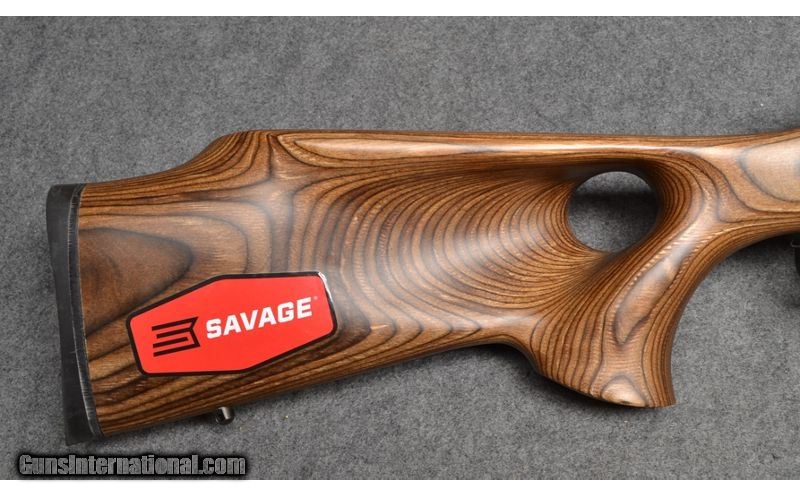 Description: This bolt-action rifle is a Savage 11, chambered in .223 Rem. It has a 22" blued steel barrel, is pre-drilled for scope mounts or a picatinny rail, and a laminated coffee wood thumb hole stock. This Savage 11 is in very good condition overall with some light handling and display wear. Comes with a box. .223 Remington SOLD Metal Condition: "Very goo, some light handling marks Wood Condition: "Very good, some light handling marks Bore Condition: Bright and shiny with visible rifling Barrels: 22" blued steel barrel Stock Dimensions: 14" LOP Fore End: Laminated coffee wood thumb hole stock Sights: Pre-drilled for scope mounts or picatinny rail Item Location: Wichita, KS |