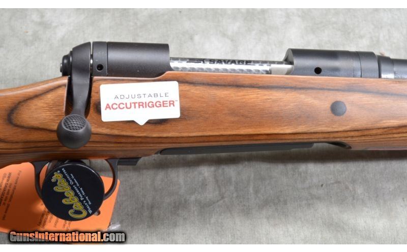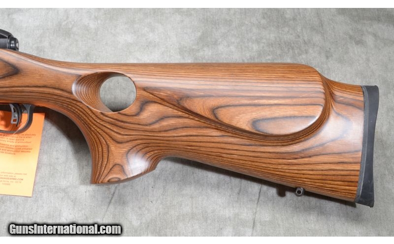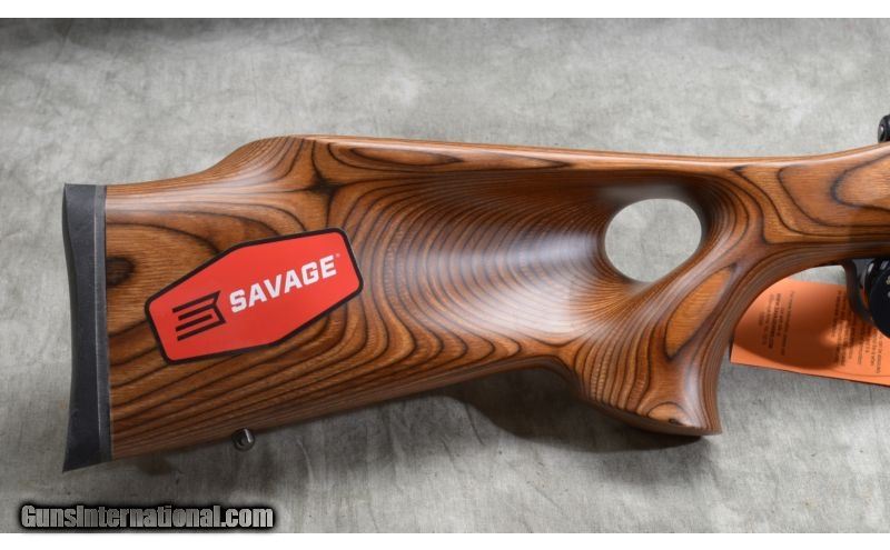 Description: This Savage Model 11 features laminated thumbhole stock, Accutrigger, internal magazine with hinged floorplate, and Like New condition. SOLD Caliber Info: .223 Remington. Chambers: 4-round internal magazine, hinged floor plate. Metal Condition: LNIB. Wood Condition: LNIB. Bore Condition: LNIB. Barrels: 22 Inch - blue, without sights. Triggers: Accutrigger Stock: Laminated hardwood with thumbhole and rolled-over comb. Stock Dimensions: 13 - 1/2 inch LOP. Fore End: Ventilated semi-beavertail. Butt Pad: Rubber pad. Weight: 7 lb. - 14 oz. Sights: Drilled and tapped for your choice of scope. Extras: Factory box, papers. Item Location: Rogers,, MN |