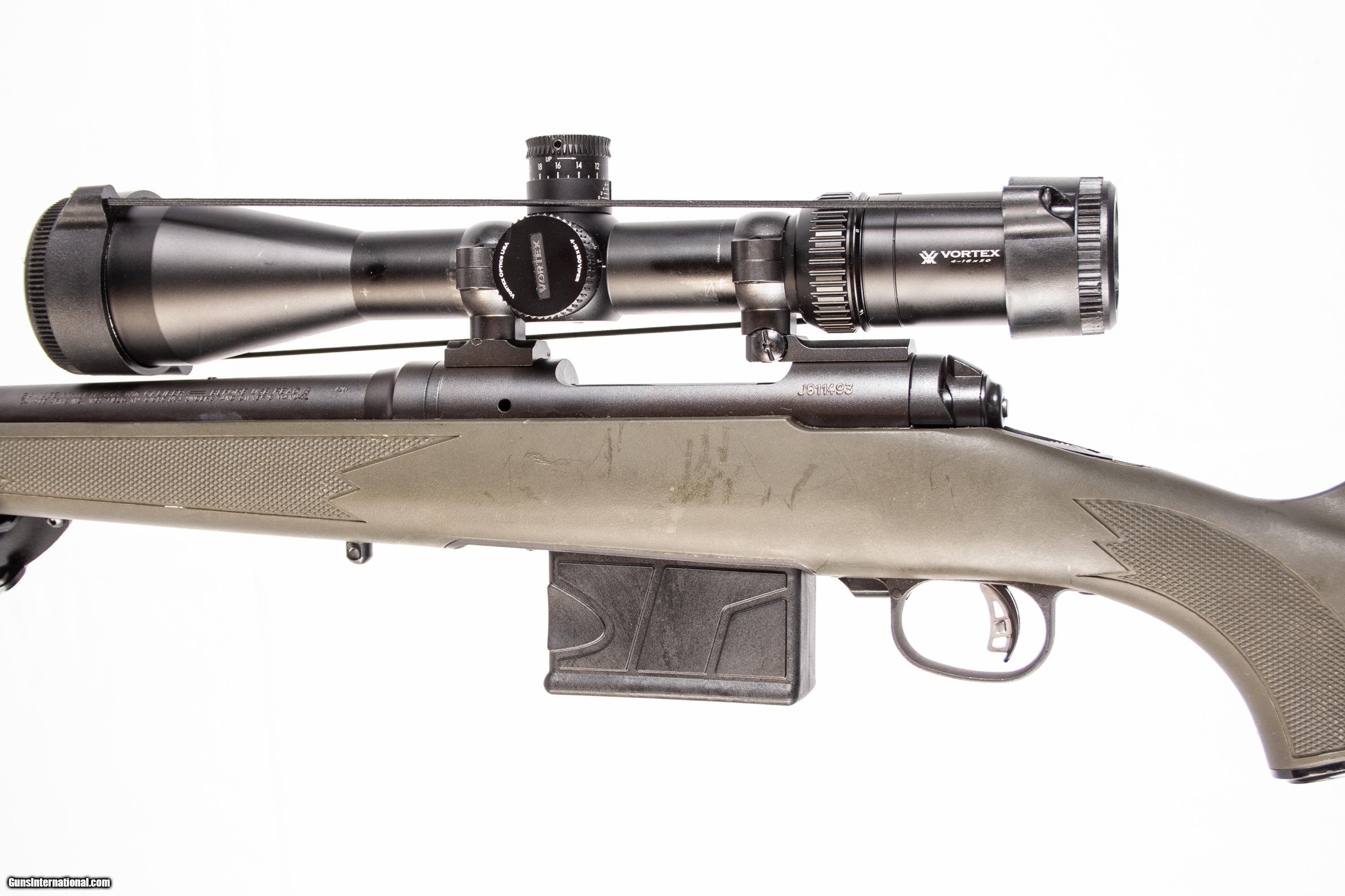 Savage model 11 chambered in 308 Win with an 18 inch barrel bright bore and good grooves with a Vortex Viper 4-16x50 scope. This gun is in excellent condition and is covered by Dury's Lifetime Warranty.