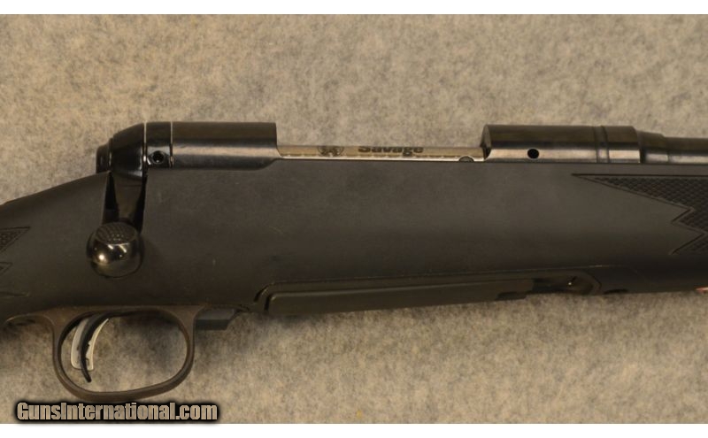 Description: This is a pre-owned Savage 11. SOLD Caliber Info: .22-250 Remington Metal Condition: Good condition with some scratches. Wood Condition: Good condition with some scratches. Bore Condition: Clean with bright lands. Barrels: 22 inch. Triggers: AccuTrigger. Stock: Checkered synthetic black AccuStock. Stock Dimensions: 13 3/4 inch LOP. Fore End: Checkered synthetic black AccuStock. Butt Pad: Black rubber recoil pad. Weight: 7 1/2 lbs. Sights: Tapped for scope, missing plug screws. Extras: Comes with the factory box and manual. Item Location: Glendale, AZ |