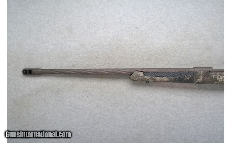Description: This Savage Model 110 is a right hand bolt action rifle in .300 Win. Mag. Cal. It has a 24 inch spiral fluted barrel plus a muzzle device. It is drilled and tapped for a scope mount. No iron sights. It has the user adjustable Savage AccuTrigger. The Accufit butt stock is LOP and comb height adjustable and with a black rubber grip inset the polymer pistol grip. The Accustock is a 3D bedding system for rigidity. It has a spiral fluted bolt and checkered bolt handle. .300 Winchester Magnum SOLD Chambers: Detachable magazine. Metal Condition: Excellent. Bore Condition: Excellent. Barrels: 24 inch spiral fluted plus a muzzle device. Triggers: Savage AccuTrigger. Stock Dimensions: LOP 13 1/2 inches. Fore End: Checkered grip black rubber inset a camo polymer. Butt Pad: Black rubber recoil pad. Weight: 8 lb. 4 oz. Sights: Drilled and tapped for a scope. No iron sights. Item Location: Richfield, WI |