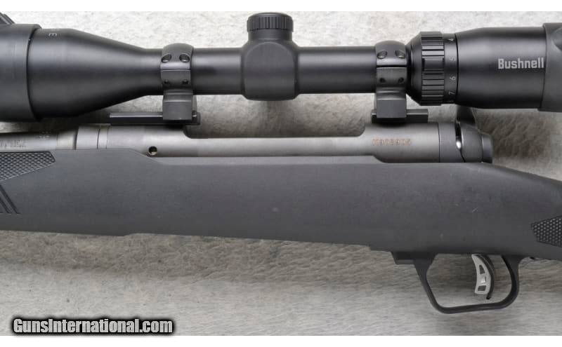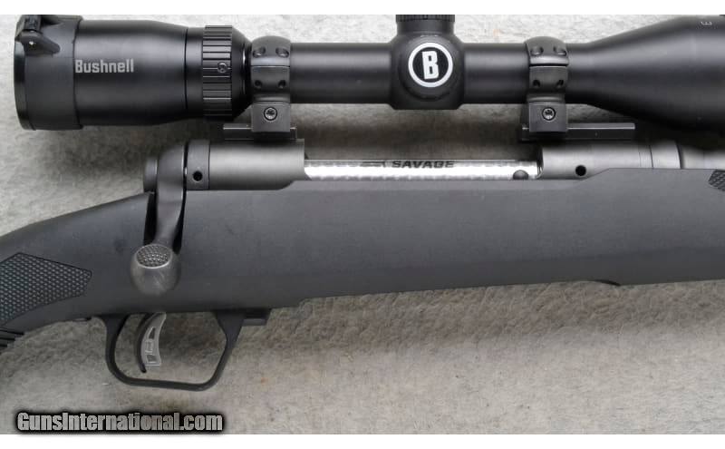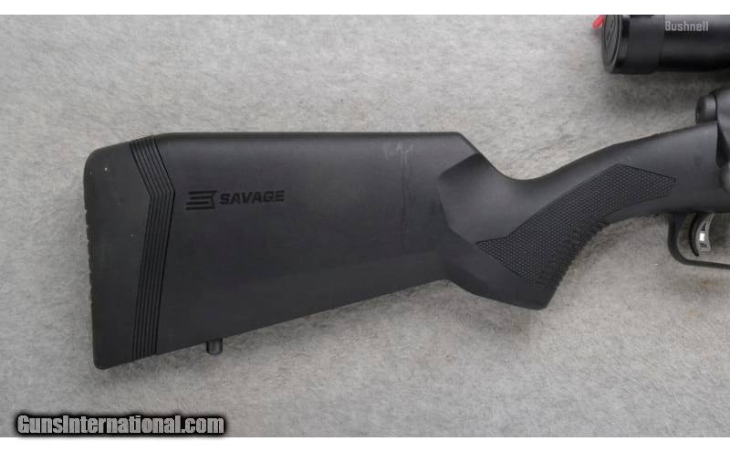 Description: This Savage Model 110 is a right hand bolt action rifle in .300 Win. Mag. Cal. It has a 24 inch barrel. It is outfitted with a Bushnell 3-9x40 Scope. The butt stock is a dual textured grip black polymer pistol grip. The forearm is a dual textured grip black polymer. It has the Savage AccuTrigger. A jeweled bolt and checkered bolt handle. .300 Winchester Magnum SOLD Chambers: Detachable magazine. Metal Condition: Excellent. Bore Condition: Excellent. Barrels: 24 inch. Triggers: Savage AccuTrigger. Stock Dimensions: LOP 13 inches. Fore End: Dual textured grip black polymer. Butt Pad: Black rubber recoil pad. Weight: 7 Lb. 14 Oz. Sights: Bushnell 3-9x40 Scope. Item Location: Richfield, WI |