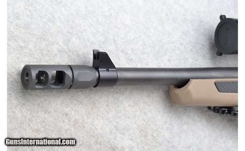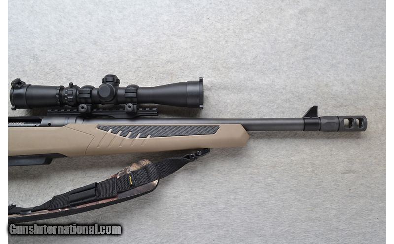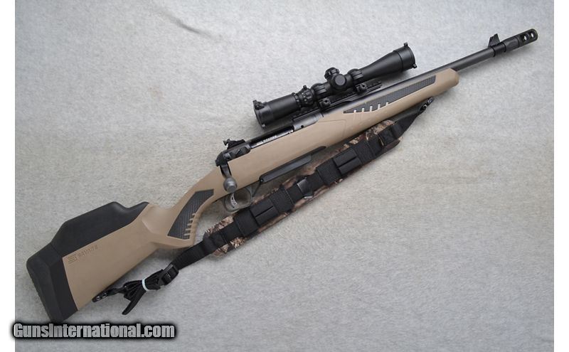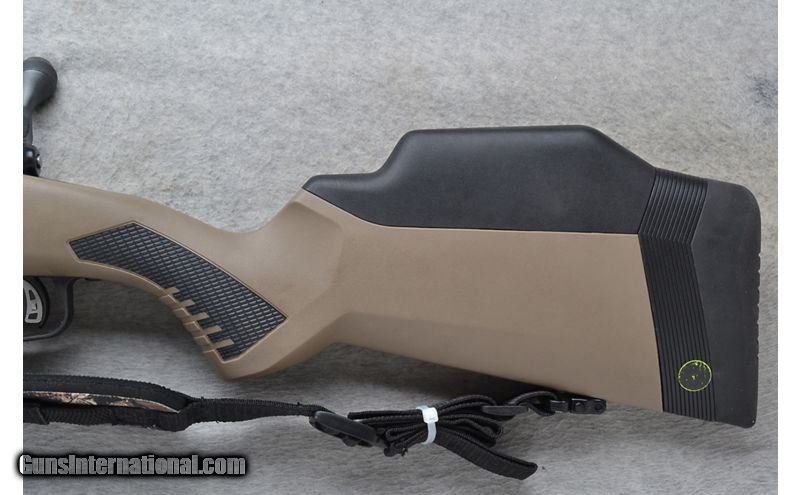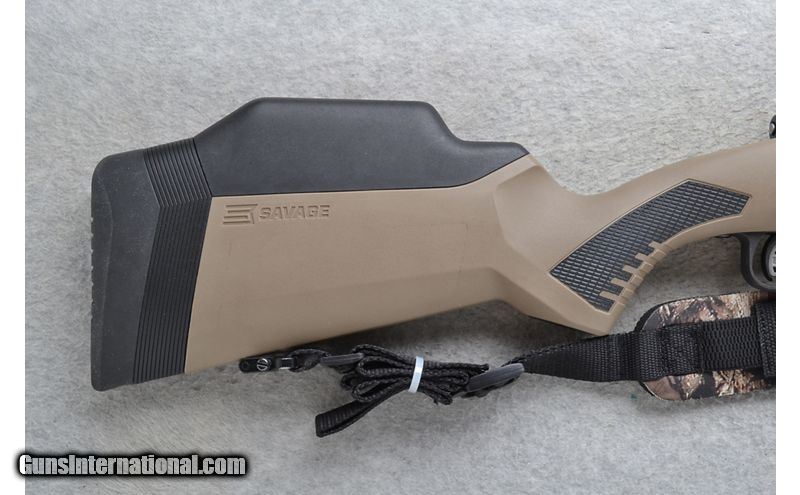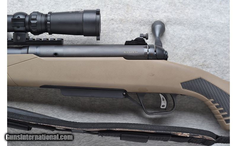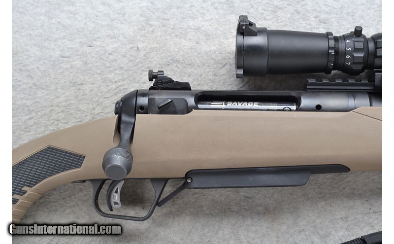 Description: This Savage Model 110 is a right hand bolt action rifle in .308 Win. It has a 16.5 inch barrel plus the muzzle device. A blade front sight with protective sides and an adjustable aperture rear sight. It is outfitted with a Hi-Lux Scope. The butt stock is a tan polymer pistol grip with checkered black rubber grip insets and a black polymer comb. The forearm is a tan polymer with checkered black rubber grip insets. It comes with four interchangeable combs and two LOP adjustment spacers. It has an AccuTrigger. .308 Winchester SOLD Chambers: Right hand bolt action 10 round detachable magazine. Metal Condition: Excellent. Bore Condition: Excellent. Barrels: 16.5 inch barrel plus a muzzle device. Triggers: Savage AccuTrigger. Stock Dimensions: LOP 13 1/2 inches. Fore End: Tan polymer with checkered black rubber grip inset. Butt Pad: Black rubber recoil pad. Weight: 9 lb. 0 oz. Sights: Blade front with protective sides. Adjustable aperture rear. Hi-Lux 2-7x32 Scope. Item Location: Richfield, WI |