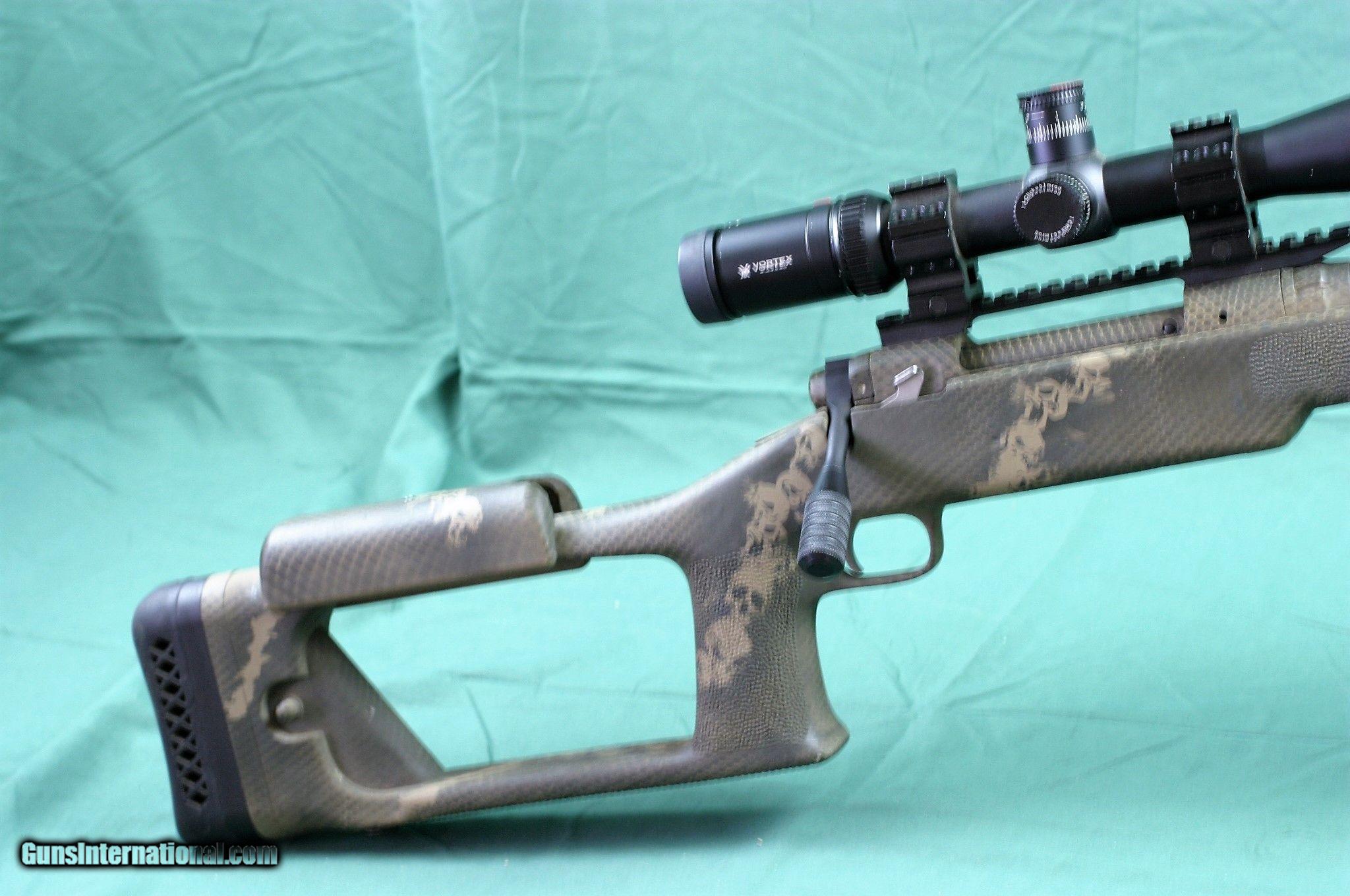 Description: Savage 110 in 300 win mag with a Vortex Viper 6.5-24 scope, 20 MOA rail MI rads single focus. Set up for long range, full ceracoat stock with ceracoat stainless 26" fluted bull barrel and custom stainless bolt,Stainless receiver with a Accu trigger and Harris bi-pod bright bore.From what i can tell it is a sniper stock cannot tell the brand what I can read says the ultimate sniper design by Major John. SOLD Manufacturer: Savage Model: 110 Serial Number: F324940 Caliber Info: 300 win mag Bore: very good Condition: very good Metal Condition: Ceracote Barrels: 26"very good Barrel Type: Stainless Action: Bolt/Stainless Triggers: Accu triger |