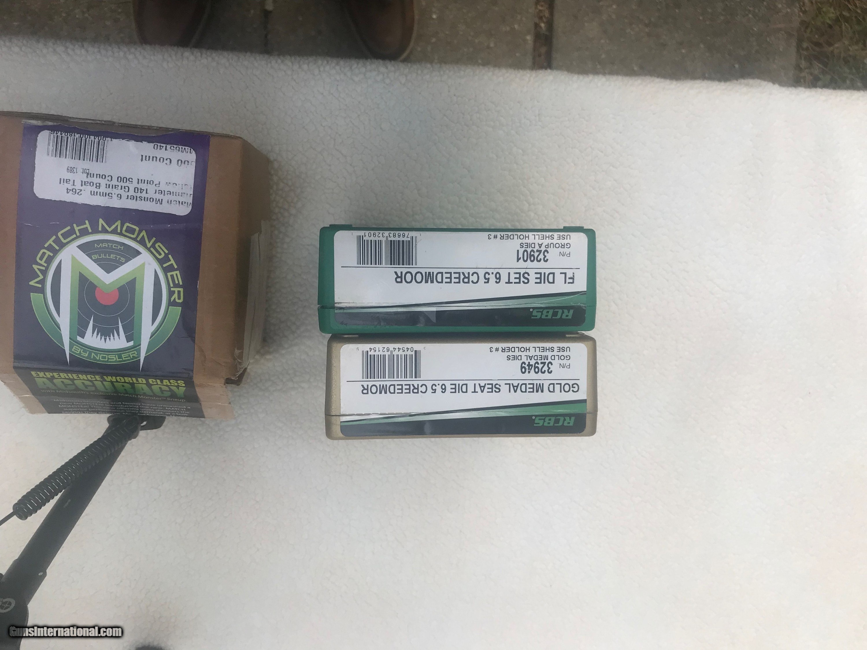 Description: Savage 110 tactical in 6.5 creedmoor, epsilon GV6 muzzle brake,Caldwell bipod, Burris xtrII 8-40 scope with F class reticle ( the 1 moa square) in excellent condition and scope box is included as is the original savage box with cheek pieces and butt spacers. Can't remenber what rings I used but they are not high dollar nor are they low dollar, midrange, work well. this rifle shot a 4 inch group at 800 yards which translates to 1/2 moa and it was a 5 shot string. Only did it once, but everything was working that day, right powder, right cases, proper neck tension, right bullet. After that best I could get was 1-1 1/2 moa at 800, which ain't bad and if I was younger, probably could do it again included are rcbs dies, rcbs gold metal bullet seater, approximately 600 140 grain 264 bullets, little over 100 hornady eld( bullet that got great group) about 500 140 grain monster match. Approximately 250 brass cases, cleaned, deprimed , full length sized , ready to prime and load. I do not know exactly how much shipping will be and it may be better to remove scope and ship it and other items separate from rifle so I'm going to add $100 bucks to my price and buyer just won't have to worry about it. Last time I fedexed a rifle it cost $85 but I've also had them ship for $35 so I don't know, but I'll pay shipping also will entertain trade for BPCR rifles or single action colt or clone price is bottom line , it's firm Have 3 listings and this is the only one that got 1 response and that was a fellow wanting to trade an axis ii in 308. have had 13 other listings and every one sold in 2 weeks or less. I'm kinda baffled at lack of response for any of my listings because it's good stuff at more than fair price. maybe if I just give them away and pay shipping or even pay to take them off my hands I'd get some takers. SOLD |