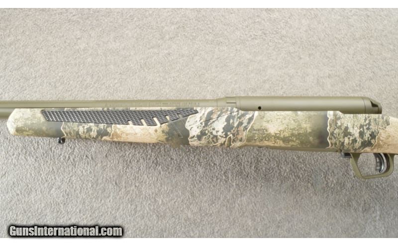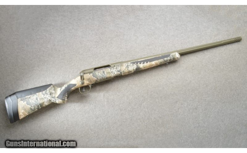 Description: Savage Model 110 Timberline chambered in .308 Winchester with a 22" fluted barrel. This Savage features overmolded surfaces, target crown, and omni-port muzzle brake, three position tang safety, and adjustable AccuTrigger. The AccuFit system lets the user customize length-of-pull and comb height of the Realtree Excape synthetic stock. The finish is OD Green Cerakote on the barrel, receiver and other critical parts. It comes with its factory matched box, owner's manual, cable lock, (5) comb height adaptors, (4) length of pull inserts and one 4 round magazine. .308 Winchester SOLD Chambers: 4+1 bolt action. Bore Condition: New. Barrels: 22" barrel. Triggers: Adjustable. Stock Dimensions: Adjustable. Fore End: Synthetic. Butt Pad: Rubber. Weight: 8.5 lbs Sights: "None, receiver is drilled and tapped. Item Location: Noblesville, IN |