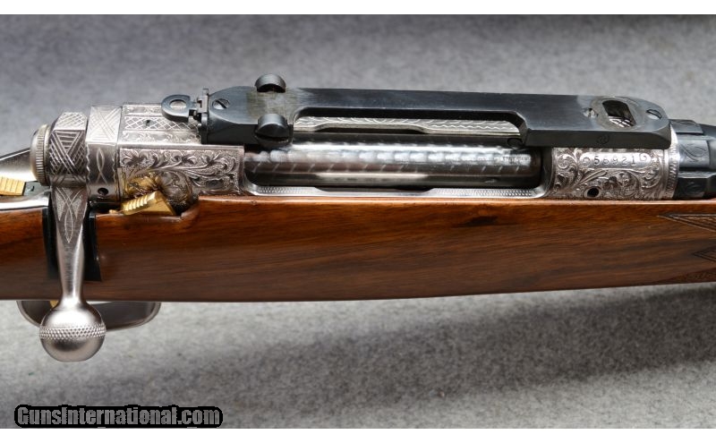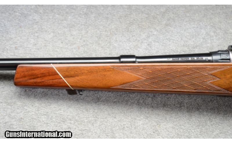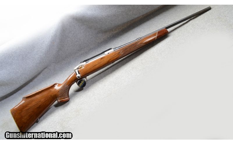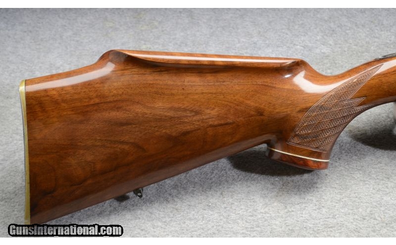 Description: SOLD Caliber Info: .30-06 Springfield Metal Condition: Excellent. You'll have to look hard for any defects. Wood Condition: Excellent. Could pass for new. Bore Condition: Bright and shiny . Barrels: 22 Inch Stock: Monte Carlo pattern checkered walnut with cheekpiece. Contrasting Rosewood grip and forearm tips. Stock Dimensions: 13 -1/4 Inch LOP Butt Pad: Black aluminum (?) plate Weight: 7 lbs - 3 oz Sights: Set up for your choice of scope Extras: Box, scope base Item Location: Rogers,, MN |