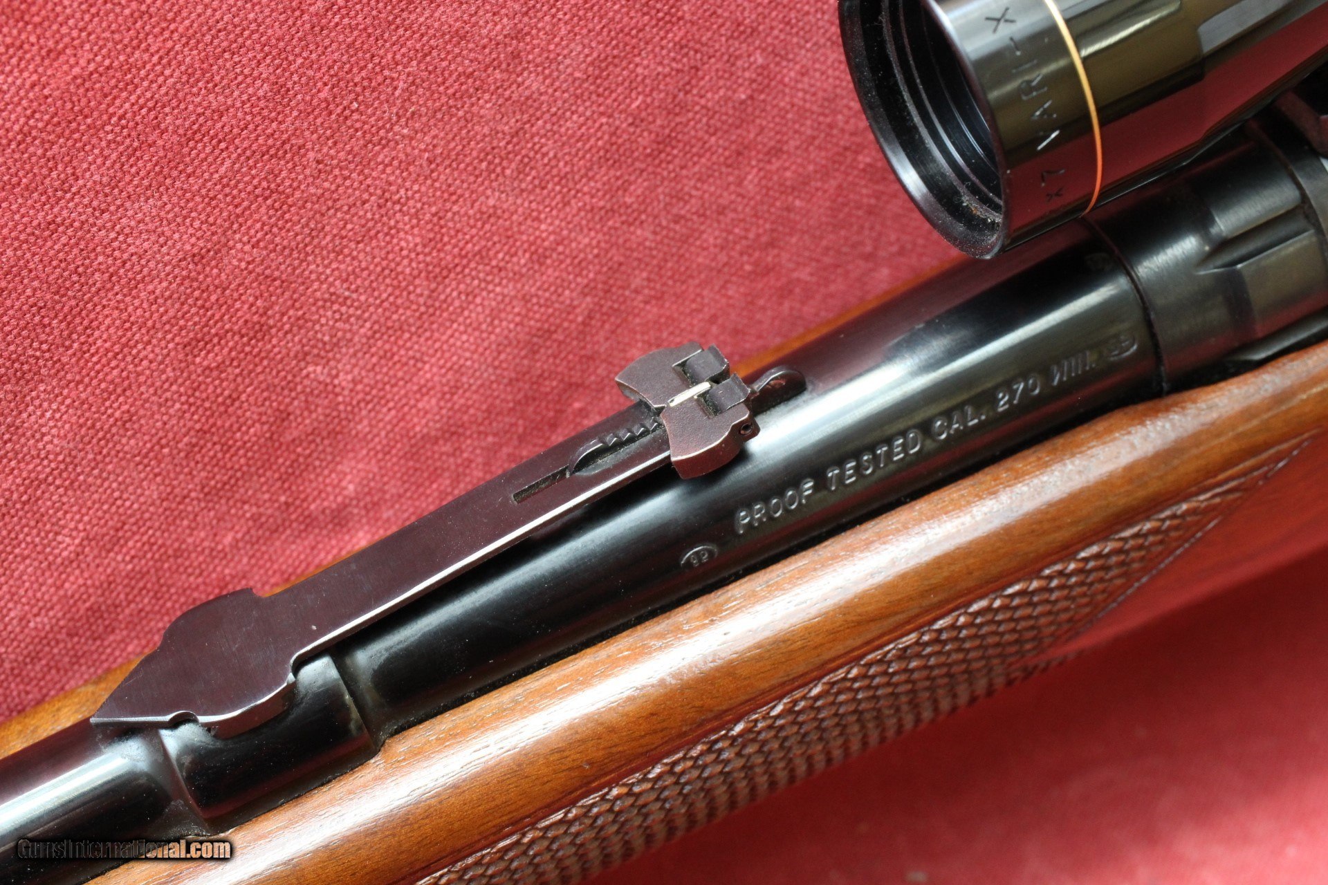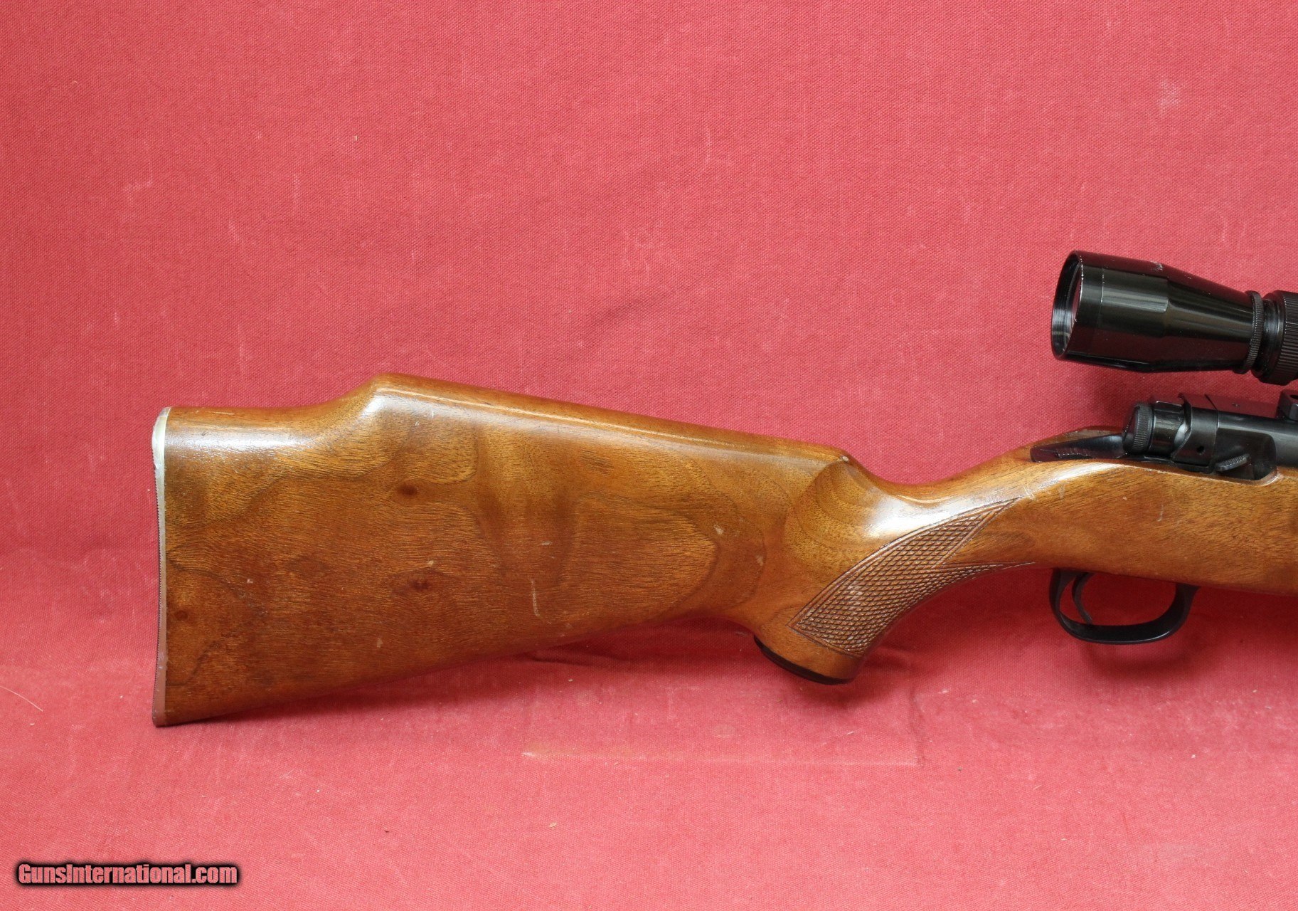 Description: 270 Win, serial number 355XX. Left hand version. 22" barrel. Metal is in good condition, shows normal wear, light marring on bottom of trigger guard. Bore is excellent. Wood shows marring, especially in pistol grip and buttstock. No cracks. Metal buttplate. Comes with Leupold 2-7 scope. More photos on request. Please add $40.00 for shipping and insurance. SOLD |