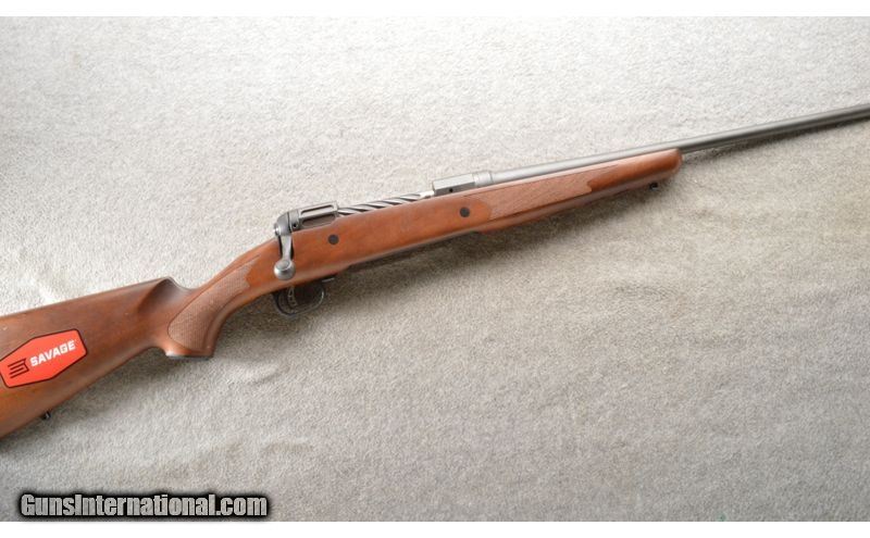 Description: This is a new rifle that Cabela's purchased as a warehouse overstock and are passing the savings on to you. This Savage Model 111 is a sharp looking rifle with a very nice walnut stock, a checkered pistol grip and forearm, vented forearm bottom, grip cap and sling studs. The blue steel is as new and the rifle has an adjustable AccuTrigger and a sprial bolt. At under 6 lbs this is a nice rifle. There is a small scrape in the stock behind the trigger guard but is will not affect how the rifle shoots. .270 Winchester SOLD Chambers: Bolt action repeater. Metal Condition: As new. Wood Condition: Very nice with minor cosmetic issues. Barrels: 20 inch blue. Triggers: Adjustable AccuTrigger. Stock Dimensions: 13 1/2 inch LOP. Fore End: Matching checkered walnut with vents on the bottom. Butt Pad: Soft black rubber butt pad. Sights: Drilled and tapped for a scope base. Item Location: christiana |