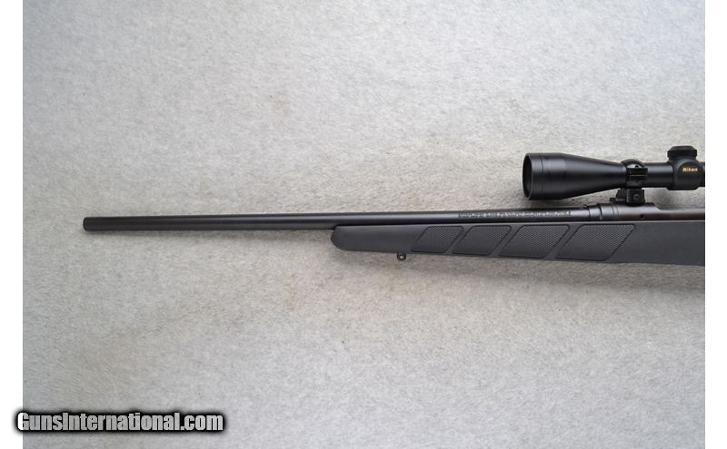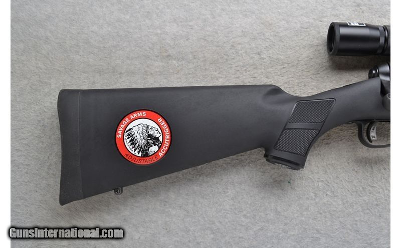 Description: This Savage Model 111 is a right hand semi-auto rifle in .308 Win. Cal. It has a 22 inch barrel. It is outfitted with a Nikon 3-9x40 Scope. No iron sights. The butt stock is a checkered grip black polymer pistol grip with a black cap. The forearm is a checkered grip black polymer. It has the Savage AccuTrigger. It has a jeweled bolt and checkered bolt handle. .308 Winchester SOLD Chambers: Detachable magazine. Metal Condition: Excellent. Bore Condition: Excellent. Barrels: 22 inch. Triggers: Savage AccuTrigger. Stock Dimensions: LOP 13 5/8 inches. Fore End: Checkered grip black polymer. Butt Pad: Black rubber recoil pad. Weight: 7 Lb. 3 Oz. Sights: Nikon 3-9x40 Scope. No iron sights. Item Location: Richfield, WI |