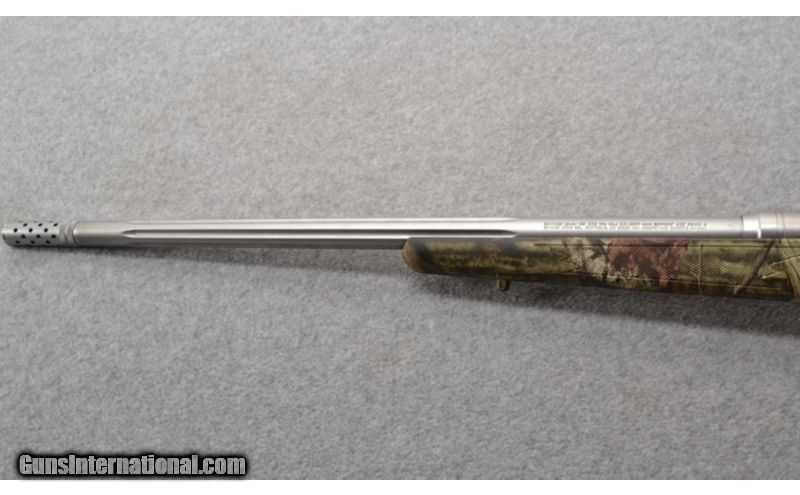 Description: Savage Model 116 .338 Winchester Magnum, 23 inch stainless fluted barrel with factory brake. The bore is bright with strong rifling, some fouling is present. Action and barrel are in excellent condition. Factory synthetic stock is in excellent condition. Includes the factory box. SOLD Caliber Info: .338 Win Mag Metal Condition: Action and barrel are in excellent condition. Wood Condition: Factory synthetic stock is in excellent condition. Bore Condition: Bright bore with strong rifling. Some fouling is present. Barrels: 23" stainless fluted barrel with factory brake. Triggers: Accutrigger Stock: Factory synthetic stock with Mossy Oak Break up infinity camouflage. Stock Dimensions: 14 inch LOP Fore End: Factory synthetic stock with Mossy Oak Break up infinity camouflage. Butt Pad: Factory black rubber recoil pad. Weight: 8 lbs. 1 oz. Sights: Factory drilled and tapped for optic. Extras: Includes factory box. Item Location: Mitchell, SD |