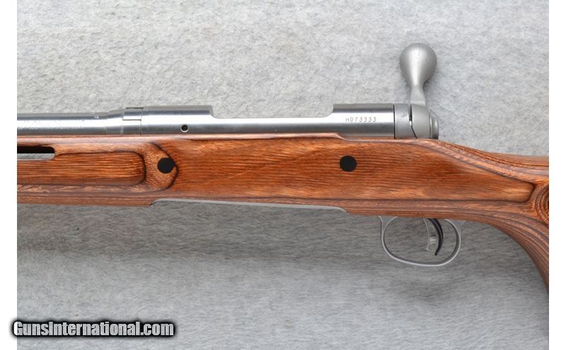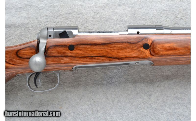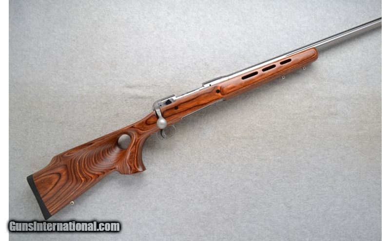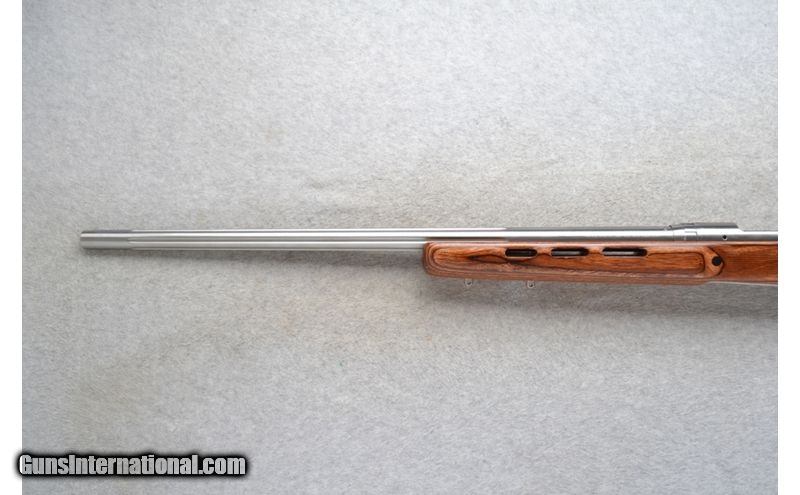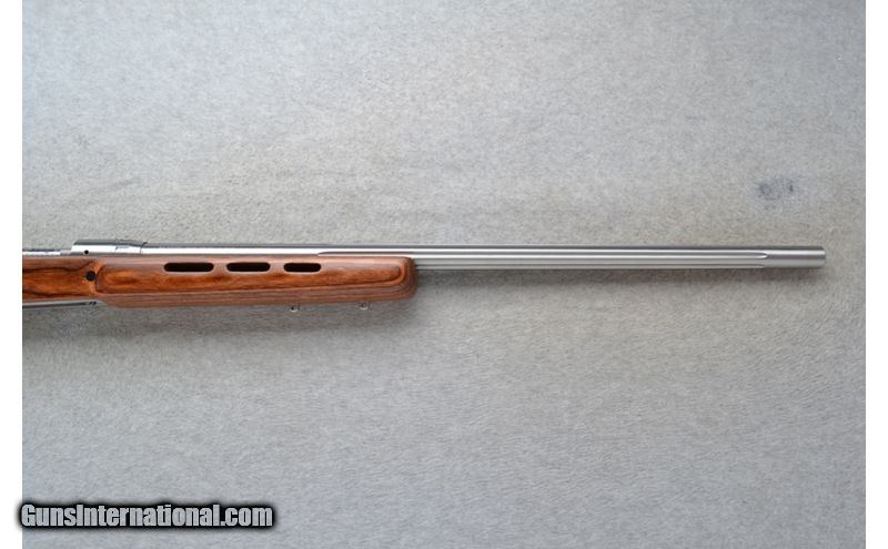 Description: This Savage Model 12 is a right hand bolt action rifle in .204 Ruger Cal. It has a 26 inch fluted target stainless steel barrel. It is drilled and tapped for a scope mount. No iron sights. The butt stock is a smooth hardwood laminate thumb hole pistol grip with a raised cheek piece. The forearm is a smooth grip hardwood laminate with side vent holes. It has the Savage AccuTrigger. The bolt is jeweled and it has a larger bolt handle. .204 Ruger SOLD Chambers: Bolt Action 4 round detachable magazine. Metal Condition: Excellent. Wood Condition: Excellent. Bore Condition: Excellent. Barrels: 26 inch fluted target stainless steel. Triggers: Savage AccuTrigger. Stock Dimensions: LOP 13 1/2 inches. Fore End: Smooth hardwood laminate with side vent holes. Butt Pad: Black rubber pad. Weight: 10 lb. 1 oz. Sights: Drilled and tapped for a scope mount. No iron sights. Item Location: Richfield, WI |