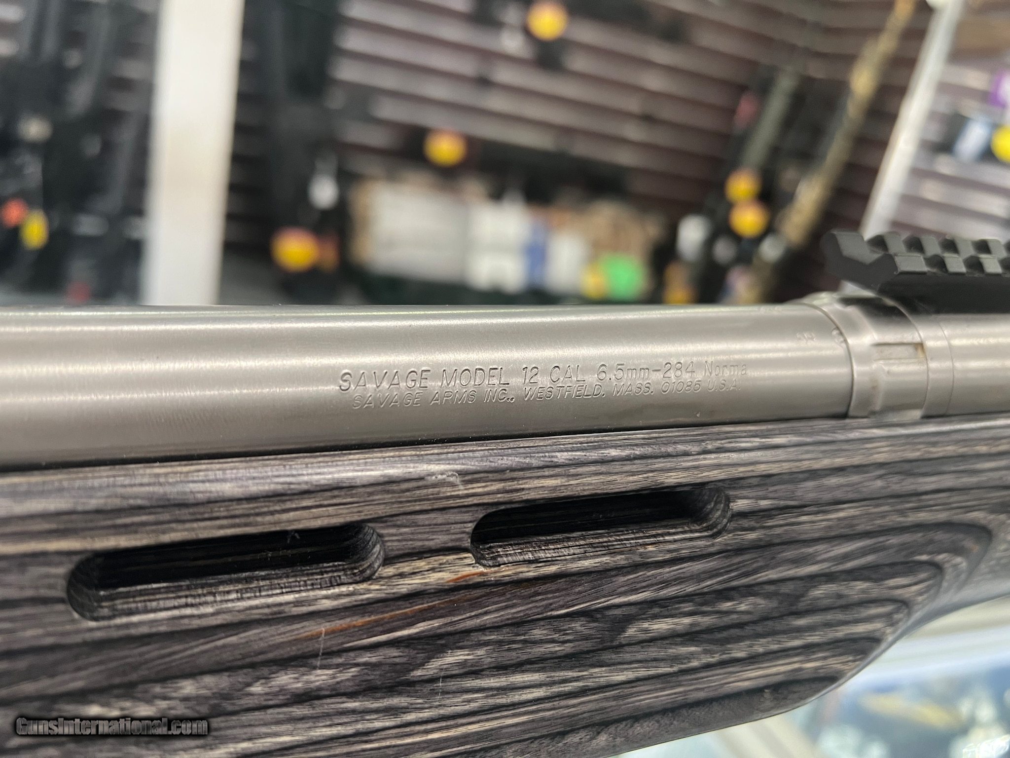 Description: Guns Listing ID: 606314 Savage model 12 6.5 mm – 284 Norma with bull barrel laminated stock single shot bolt action minor scuffs and scratches overall good condition SOLD Manufacturer: SAVAGE ARMS Model: SAVAGE 12 Caliber Info: 6.5-284 NORMA Condition: Used - Non-Certified Barrels: 3 BARREL Finish: STAINLESS |