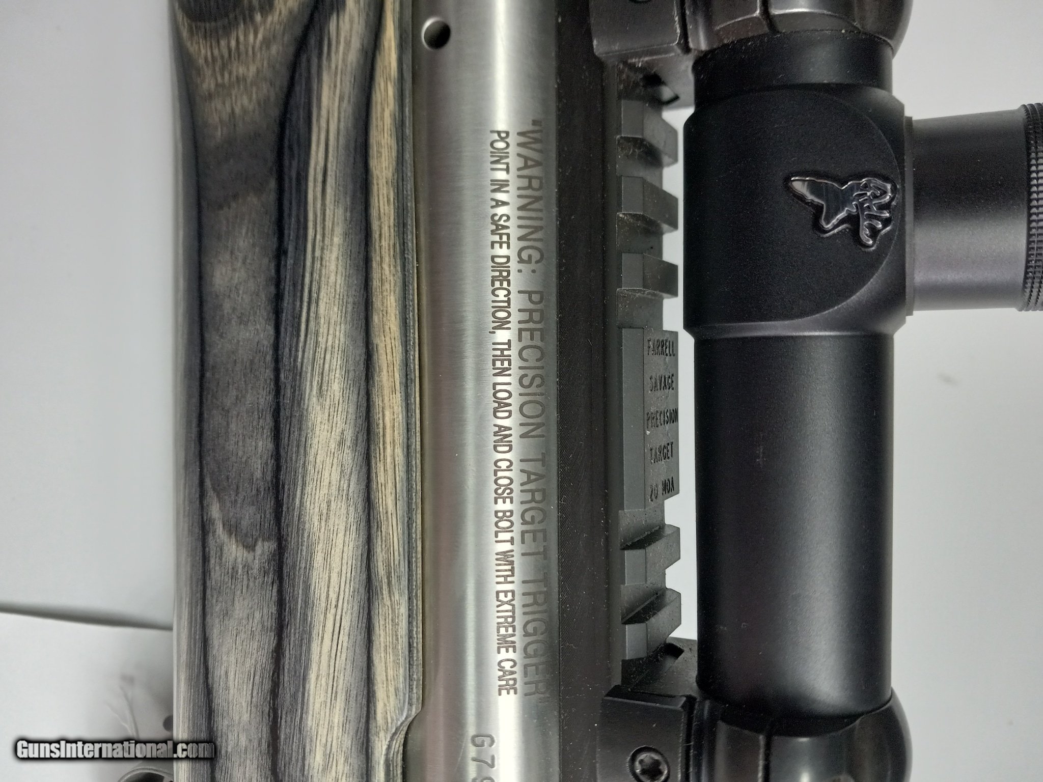 Description: Guns Listing ID: 703282 Pre-Owned. Great Condition. Comes with Tasco TS36x44DS Scope. Bi-Pod NOT Included. Featuring a distinct laminate wood stock, the Savage Arms Target Series 12 F/TR .308 Winchester Bolt-Action Rifle is a single-shot firearm. It has a heavy, free-floating barrel and a user-adjustable AccuTrigger, as well as a 3-position safety. SOLD Manufacturer: SAVAGE ARMS Model: 12 f/tr Caliber Info: .308 WIN Condition: Used - Non-Certified Barrels: 2.9 BARREL Finish: STAINLESS |
