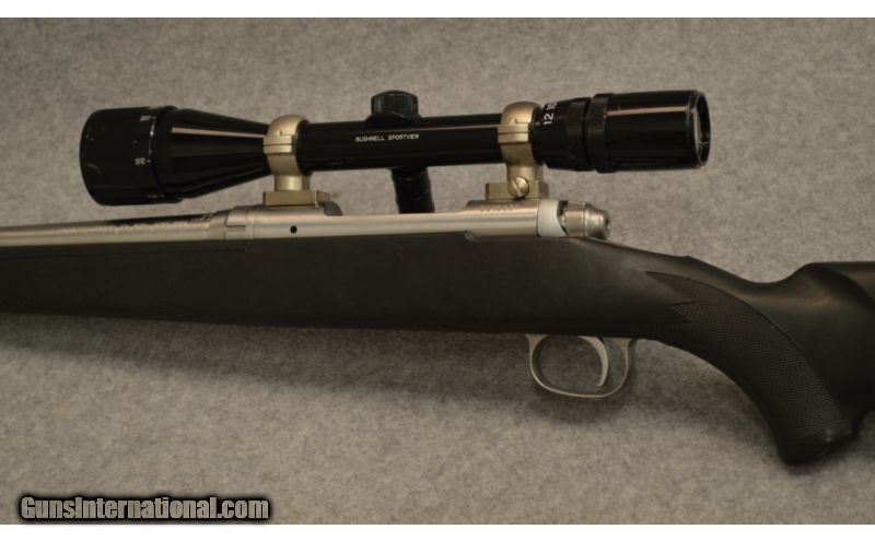 Description: SOLD Caliber Info: .243 WIN. Chambers: Bolt action right. Metal Condition: Good condition. Wood Condition: Good condition. Bore Condition: Good condition. Barrels: 22 Inch. Triggers: Single. Stock: Black synthetic pistol grip with checkered. Stock Dimensions: 13 1/8 LOP. Fore End: Matching synthetic with checkered. Butt Pad: Rubber pad. Weight: 8 lbs 4 oz. Sights: Bushnell sport view scope 20 yd to 1000 yd. Item Location: Berlin, MA |