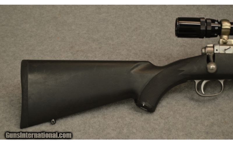Description: SOLD Caliber Info: .243 WIN. Chambers: Bolt action right. Metal Condition: Good condition. Wood Condition: Good condition. Bore Condition: Good condition. Barrels: 22 Inch. Triggers: Single. Stock: Black synthetic pistol grip with checkered. Stock Dimensions: 13 1/8 LOP. Fore End: Matching synthetic with checkered. Butt Pad: Rubber pad. Weight: 8 lbs 4 oz. Sights: Bushnell sport view scope 20 yd to 1000 yd. Item Location: Berlin, MA |