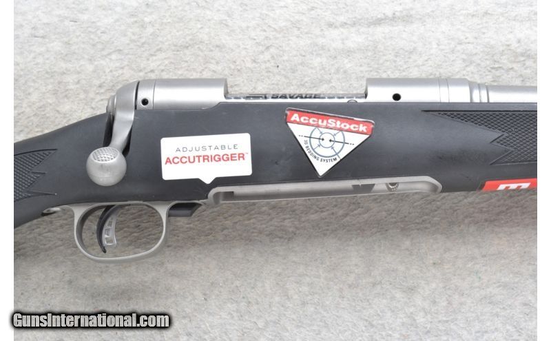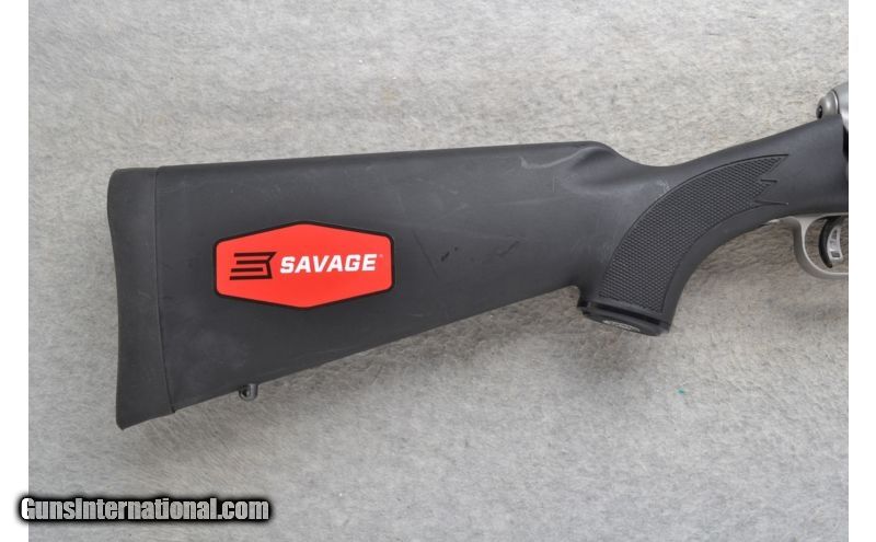 Description: This Savage Model 16 is a right hand bolt action rifle in .270 WSM Cal. It has a 24 inch barrel. It is drilled and tapped for a scope mount. No iron sights. The stock is a checkered black polymer pistol grip butt and forearm. The bolt is jeweled and the bolt handle is checkered. It has the Savage AccuTrigger. SOLD Caliber Info: .270 WSM Chambers: Bolt Action 4 round detachable magazine. Metal Condition: Very Good. Wood Condition: Stock is very good with light surface scuff marks. Bore Condition: Very good. Barrels: 24 inch satin finish stainless steel. Triggers: Savage AccuTrigger. Stock: Checkered black polymer pistol grip with a cap. Stock Dimensions: LOP 13 3/4 inches. Fore End: Checkered grip black polymer. Butt Pad: Black rubber recoil pad. Weight: 7 lbs. 7 oz. Sights: Drilled and tapped for a scope mount. No iron sights. Extras: Sling swivel studs. Item Location: Richfield, WI |
