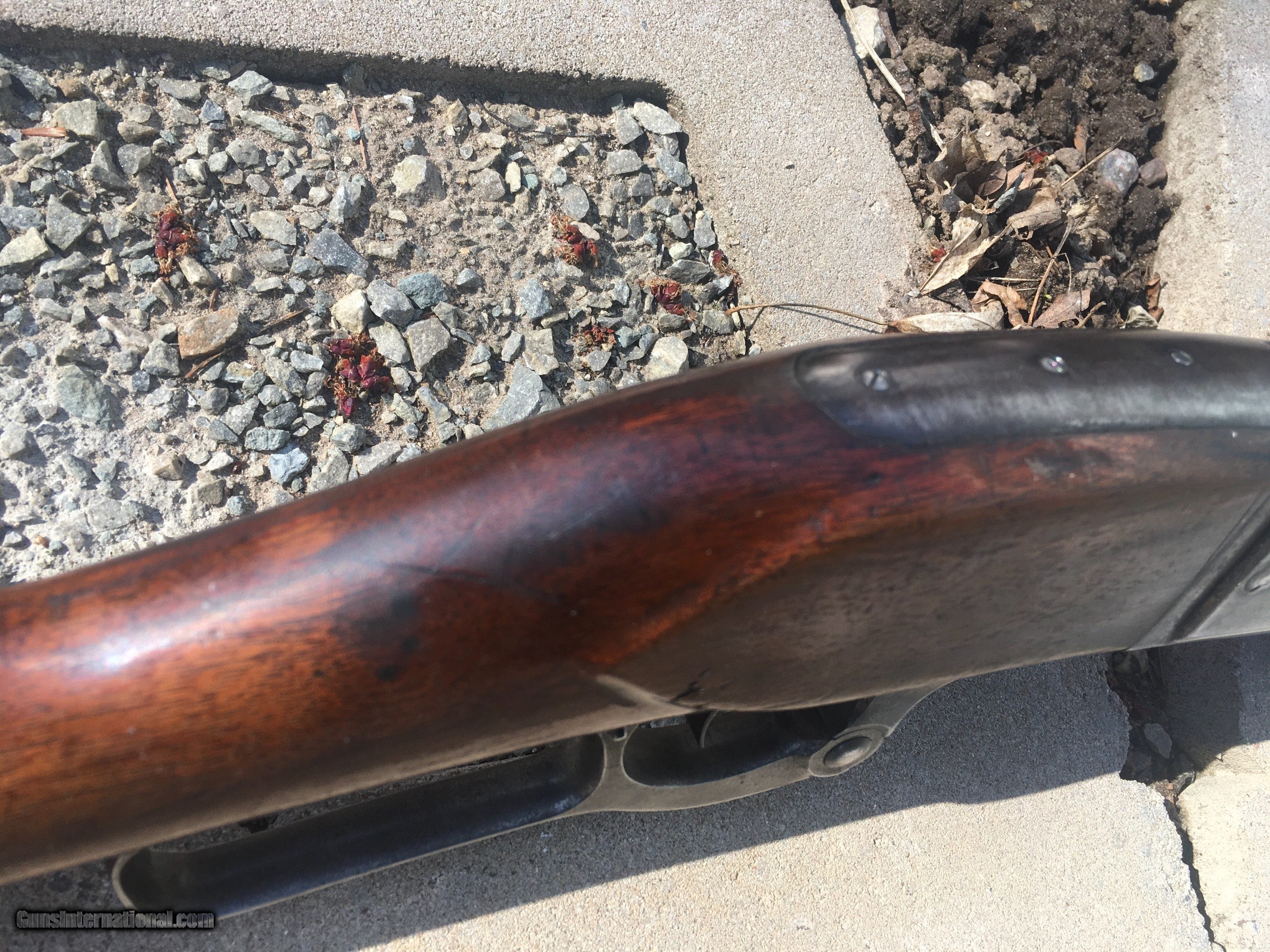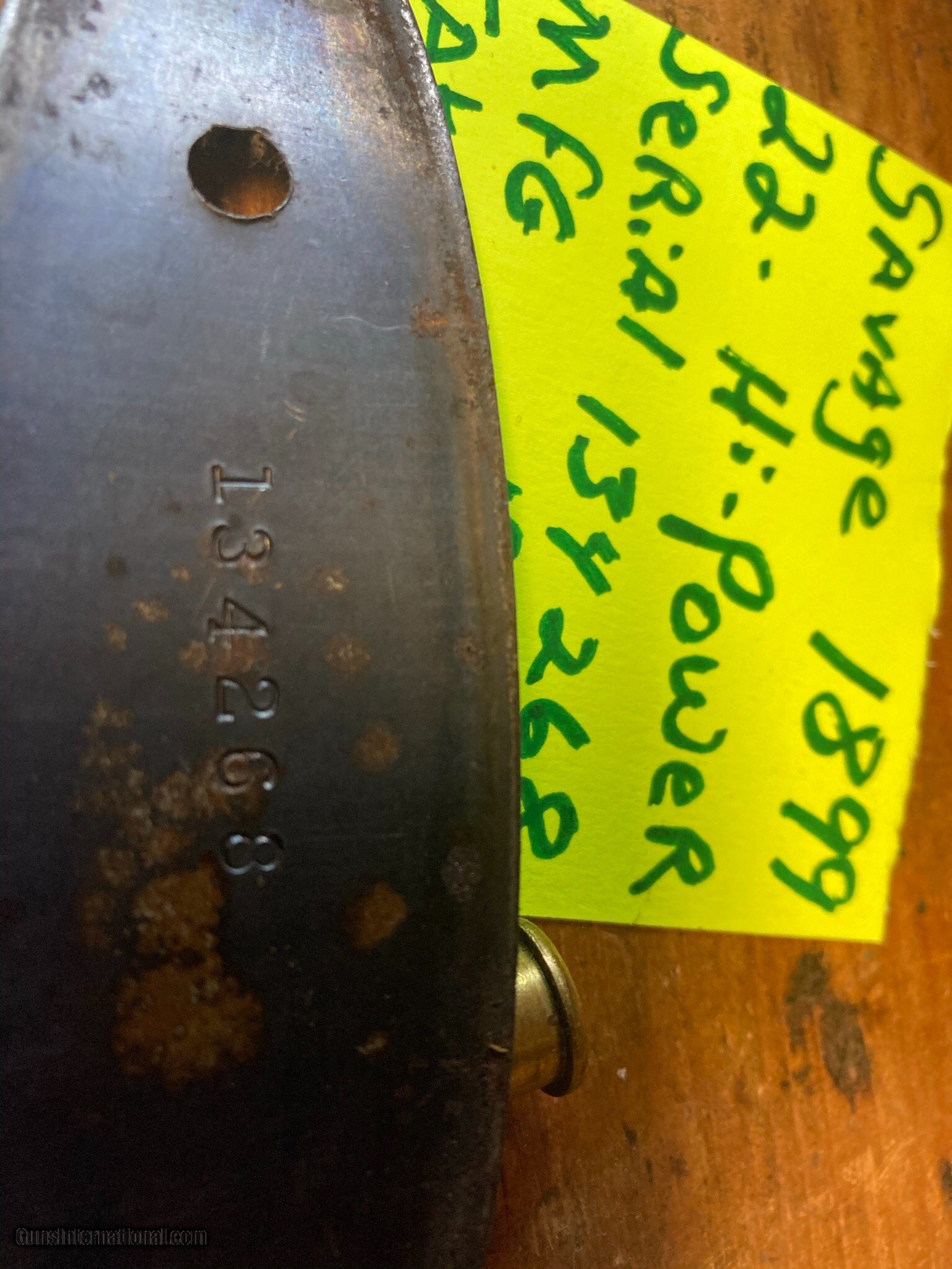 Description: Listing a Savage 22 Hi Power of mine, serial number 134268, mfgd In 1913. Which makes it a second year rifle, pretty good shape for 108 years old. The numbers all match , Has the 20" barrel , metal butt plate with Indian head logo, no cracks to the rear of receiver, metal has not been polished or ever re-blued nor has the wood been redone. Shoots fine, bore looks good, cycles ammo fine. I've hunted with this old gal. I may sell a set of RCBS dies and some empty brass as well. Need a cashiers check or postal money order or cash if some one in Wisconsin were to buy it and link up someplace . I'd ship to a C&R or FFL through USPS insured priority mail. Requires a signature upon delivery. if you've questions text or call 920-590-3400 thanks and have a fine day SOLD Curio/Relic: Yes Rifle Caliber: .22 Savage Hi-Power Manufacturer: Savage Model: 1899 takedown Serial Number: 134268 Condition: Fine Metal Condition: Original Wood Condition: Original Bore Condition: Good Barrel Type: round Action: lever Triggers: single Stock: wood-straight Butt Pad: metal Sights: open leaf rear |