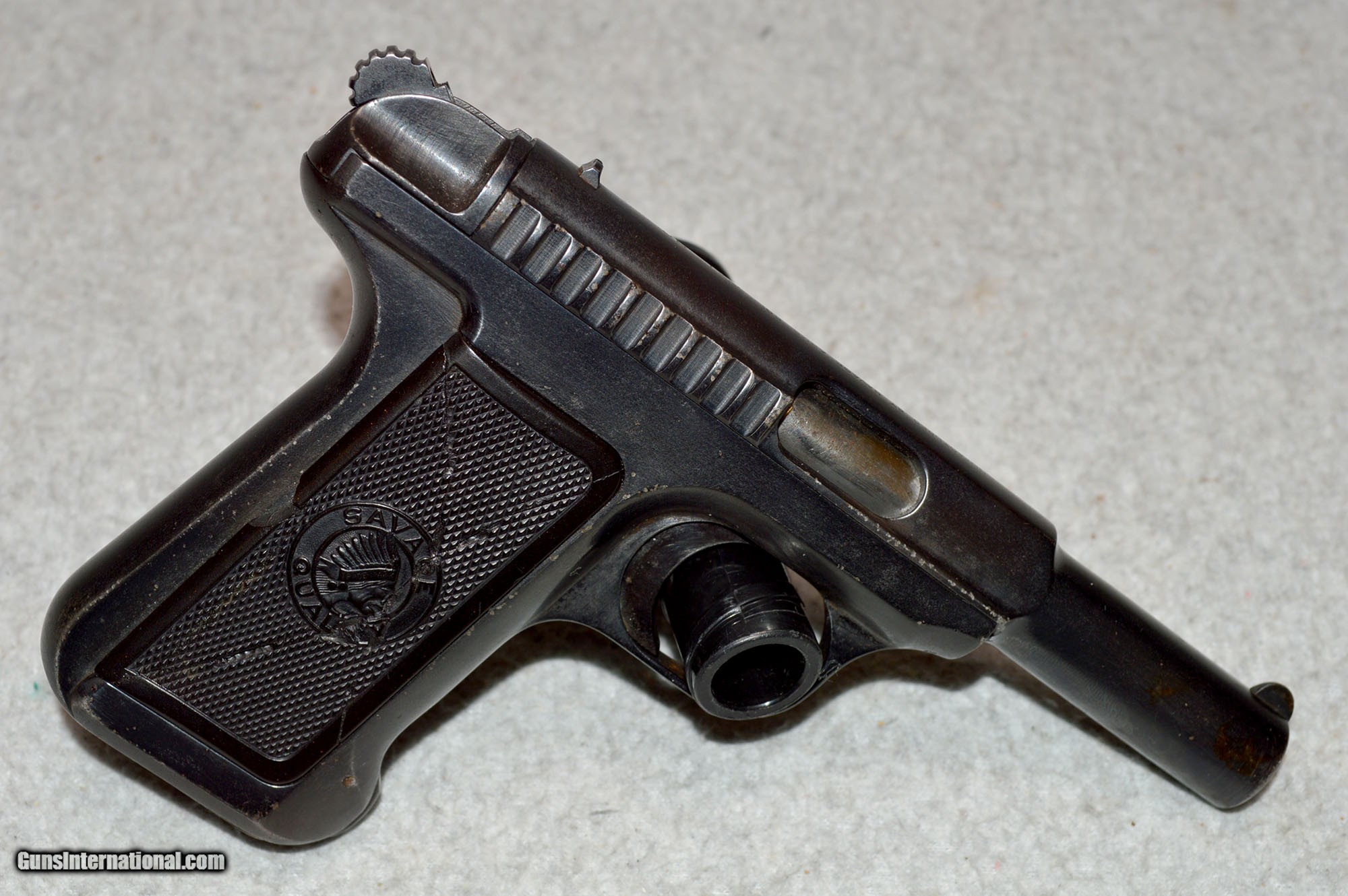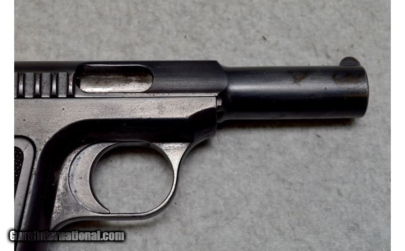 Description: Very good condition, right side grip has cracks, left side is in very nice condition with some heavy wear on the center of the grip. The Savage Model 1907 in .32 ACP is a historic semi-automatic pocket pistol known for innovative features like its high-capacity double-stack magazine and screwless design. Produced from 1907 to 1920, it was a popular civilian self-defense option and saw military use with the French army during World War I. Key Features and Specifications The Model 1907 was revolutionary for its time, incorporating several design elements that would become standard in modern handguns decades later. Capacity: A major selling point was its high-capacity, 10-round double-stack magazine in .32 ACP, significantly more than competitors like the Colt Model 1903 which typically held 8 rounds. Design: The pistol utilizes a unique hesitation-locked delayed blowback action with a rotating barrel and contains no screws in its assembly, with even the grips snapping into place. Striker-Fired: Despite having an external part that resembles a hammer, it is actually a cocking lever for an internal striker mechanism. Ergonomics: Advertised with the slogan "Aims easy as pointing your finger," the grip design was well-regarded for providing a natural point of aim. Portability: It weighs approximately 19 ounces and has a barrel length of 3.75 inches, making it a compact pocket pistol for its era. .32 Auto Barrels: 3.5 Inches Weight: 1.2 lbs Item Location: Avon, OH Price: $419.99 Contact Seller |