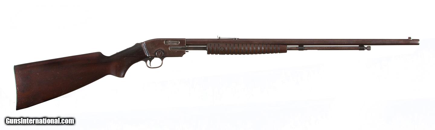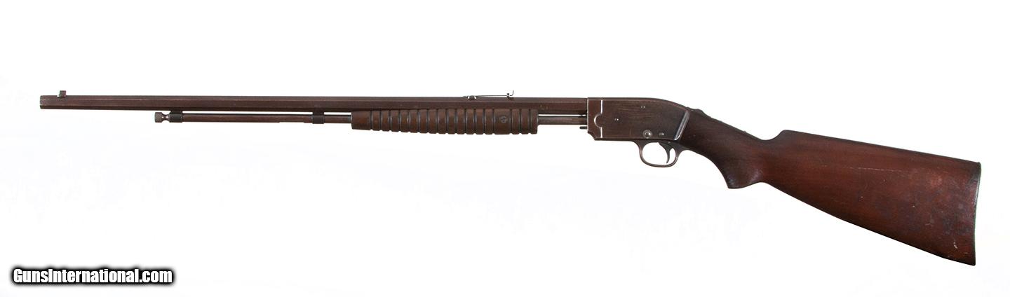 Description: This is a Savage 1914 chambered in .22 S, L and LR. This .22 pump action rifle has a 24” octagon barrel with a good bore. This gun is in it’s patina stage, as it has no to very little original finish on it. The wood is all original as well, and is in very good condition. This rifle is a great gun to shoot and is being sold as is. SOLD Manufacturer: Savage Model: 1914 Serial Number: 22616 Caliber Info: .22L, S, LR Bore Condition: Good Action: pump Item Location: NY |