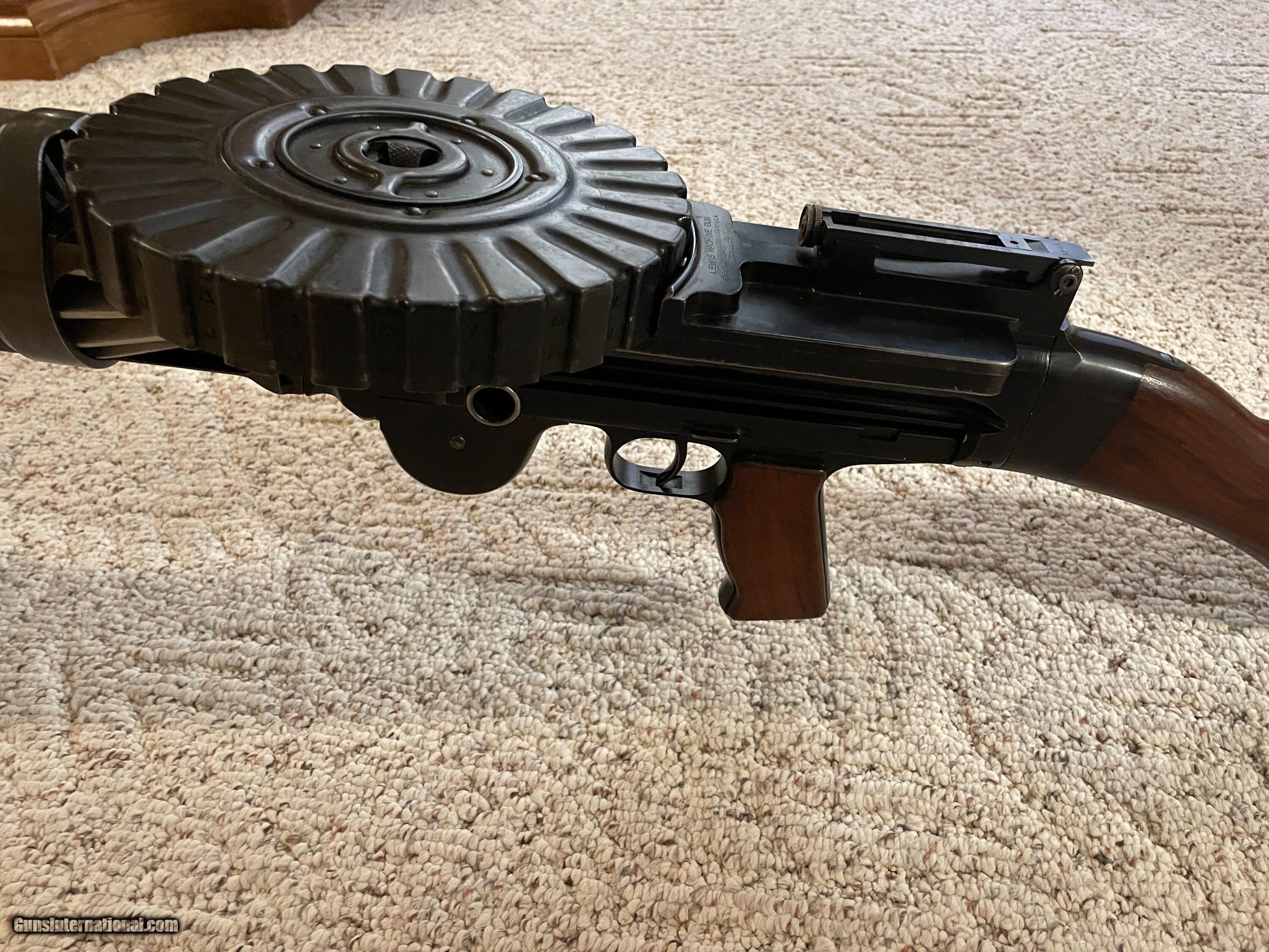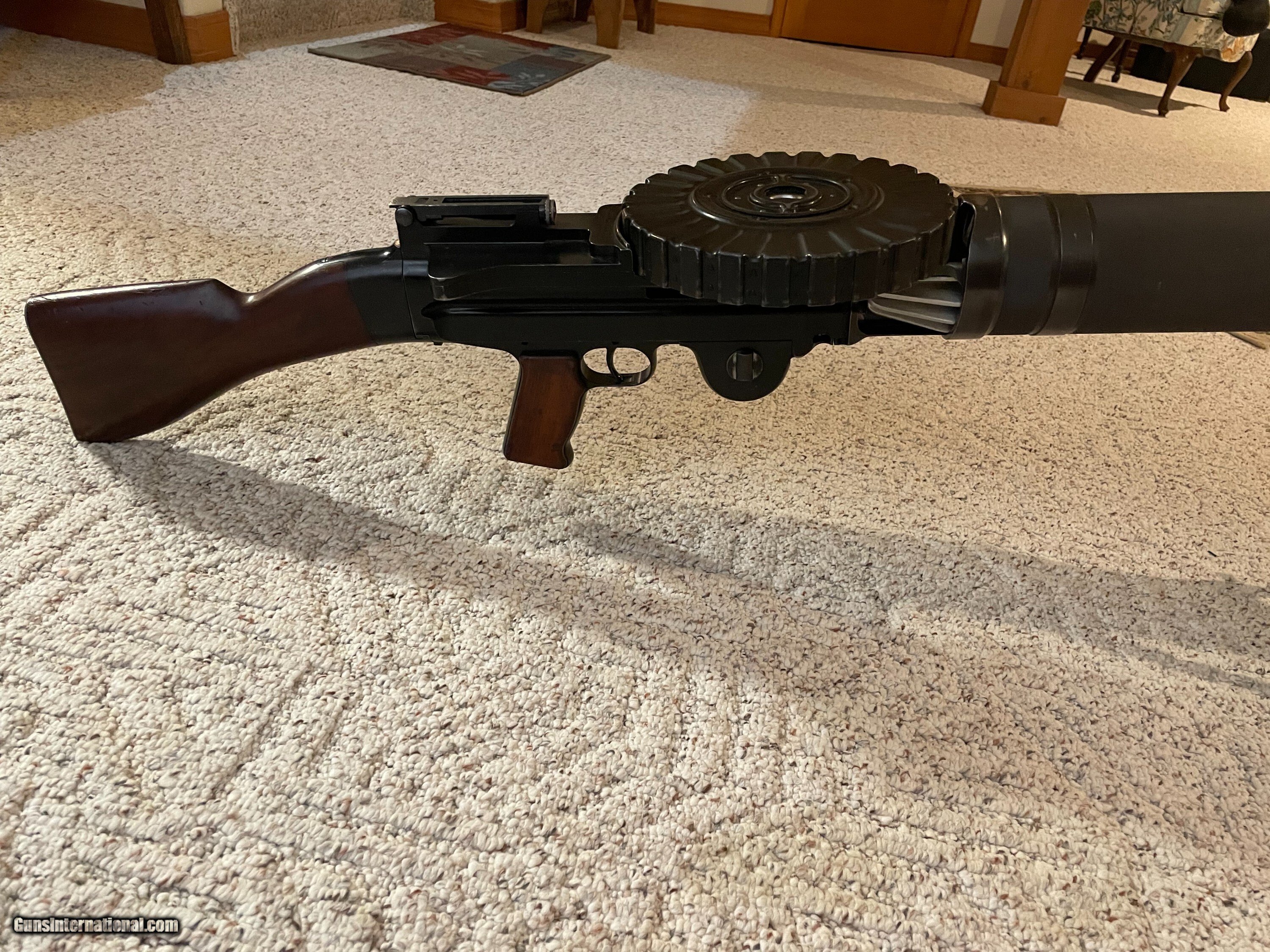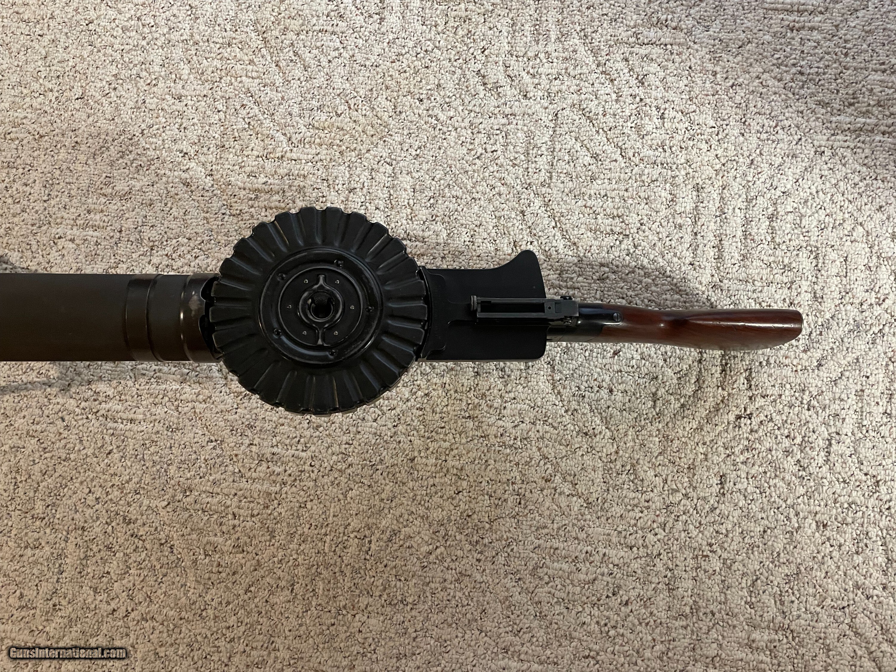 Description: Museum quality all original Lewis Gun by Savage arms in 30-06 comes with two 47 rd pans extra feed pawl and extra main spring and mount for military T&E socket. Ships in wooden crate. Very controable and accurate not a high rate of fire. You can squeeze off a rd one at the time or full auto. More Pics are available. Curio/Relic: Yes Manufacturer: Savage Model: 1917 Serial Number: 2204 Barrel Length: 26 Condition: Very Good Metal Condition: very good Wood Condition: very good Bore Condition: EXC. Price: $38,000.00 Contact Seller |