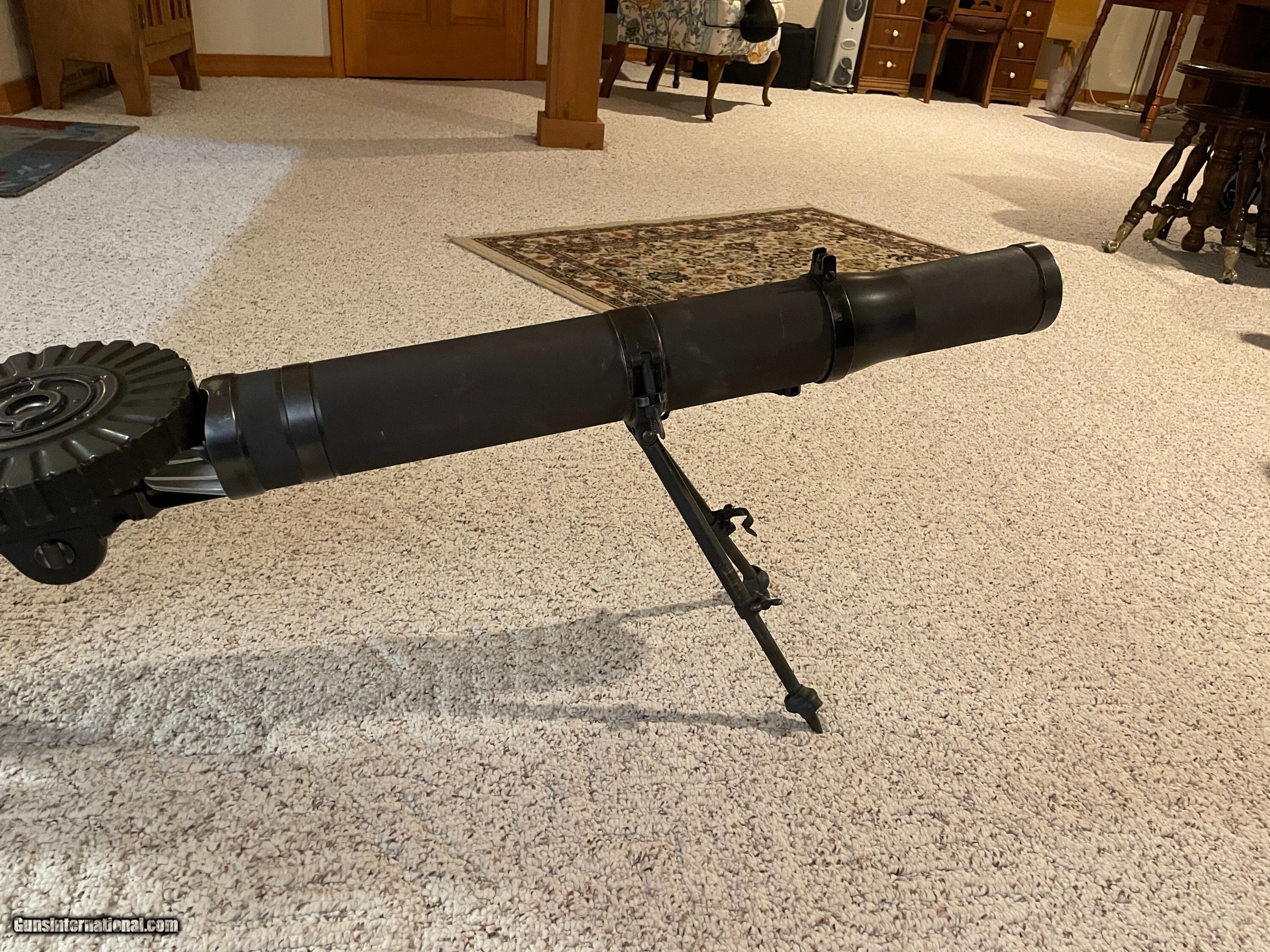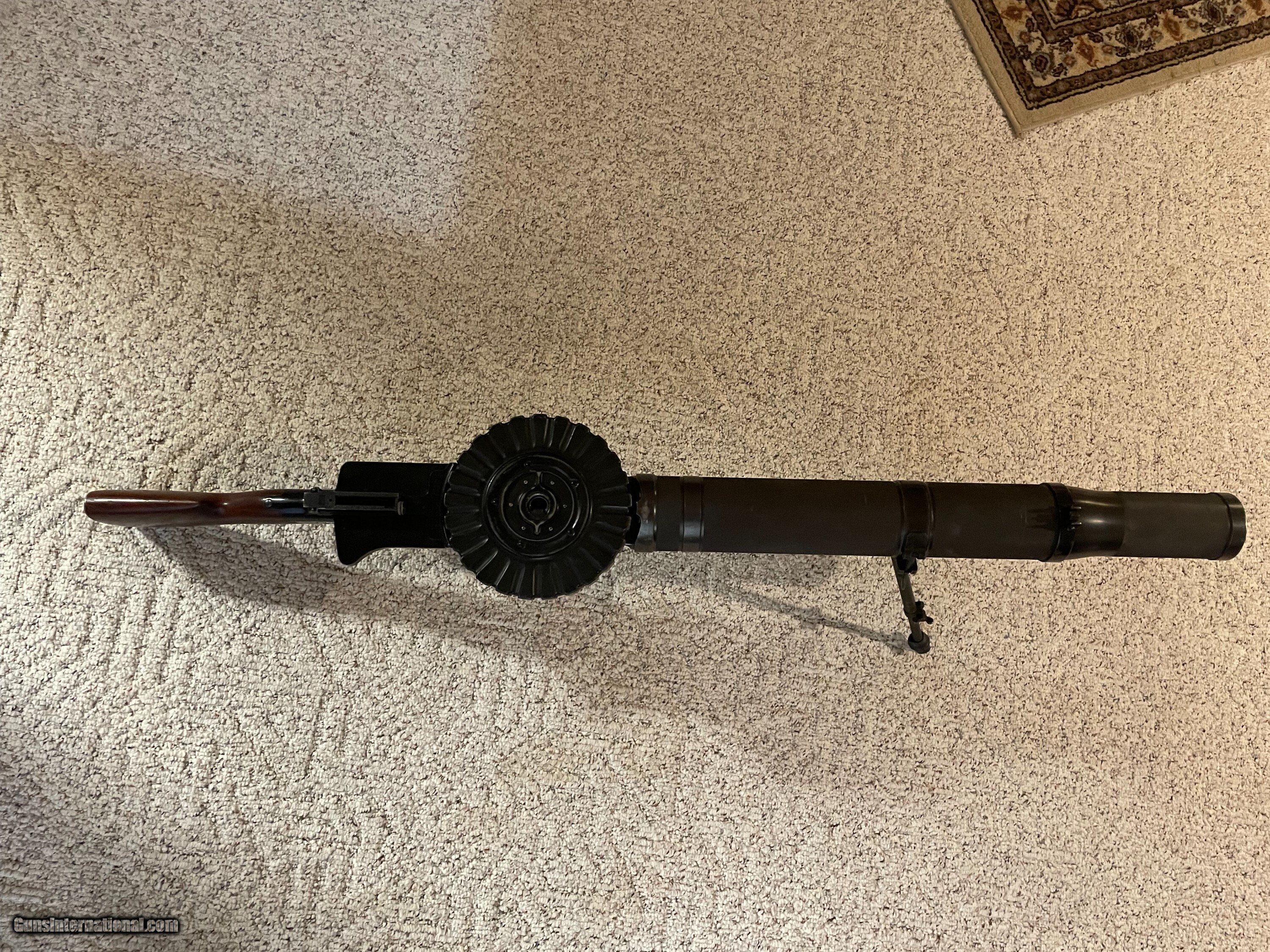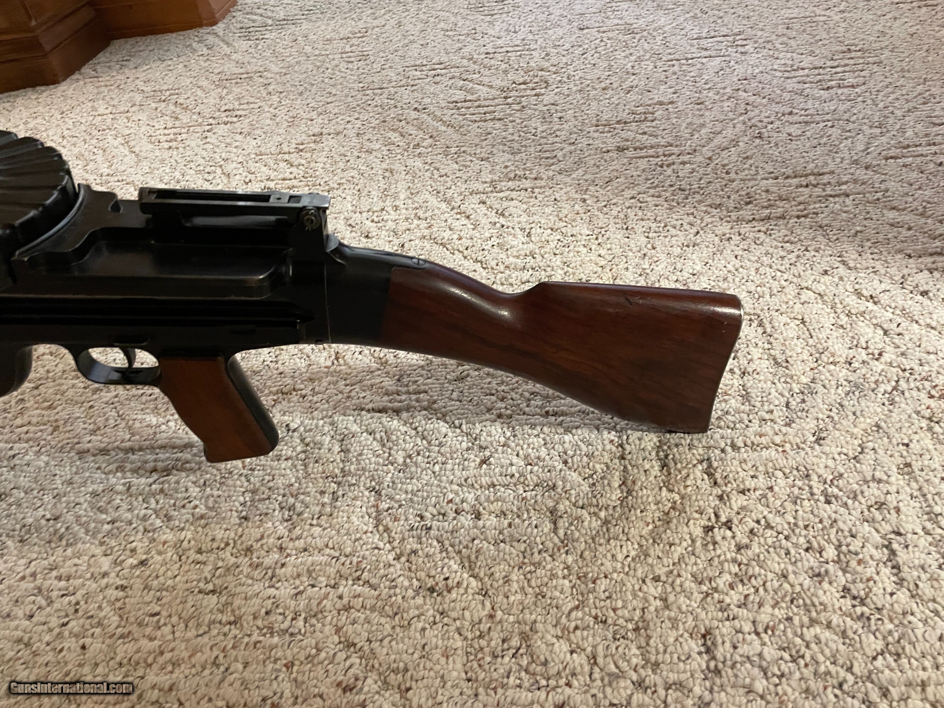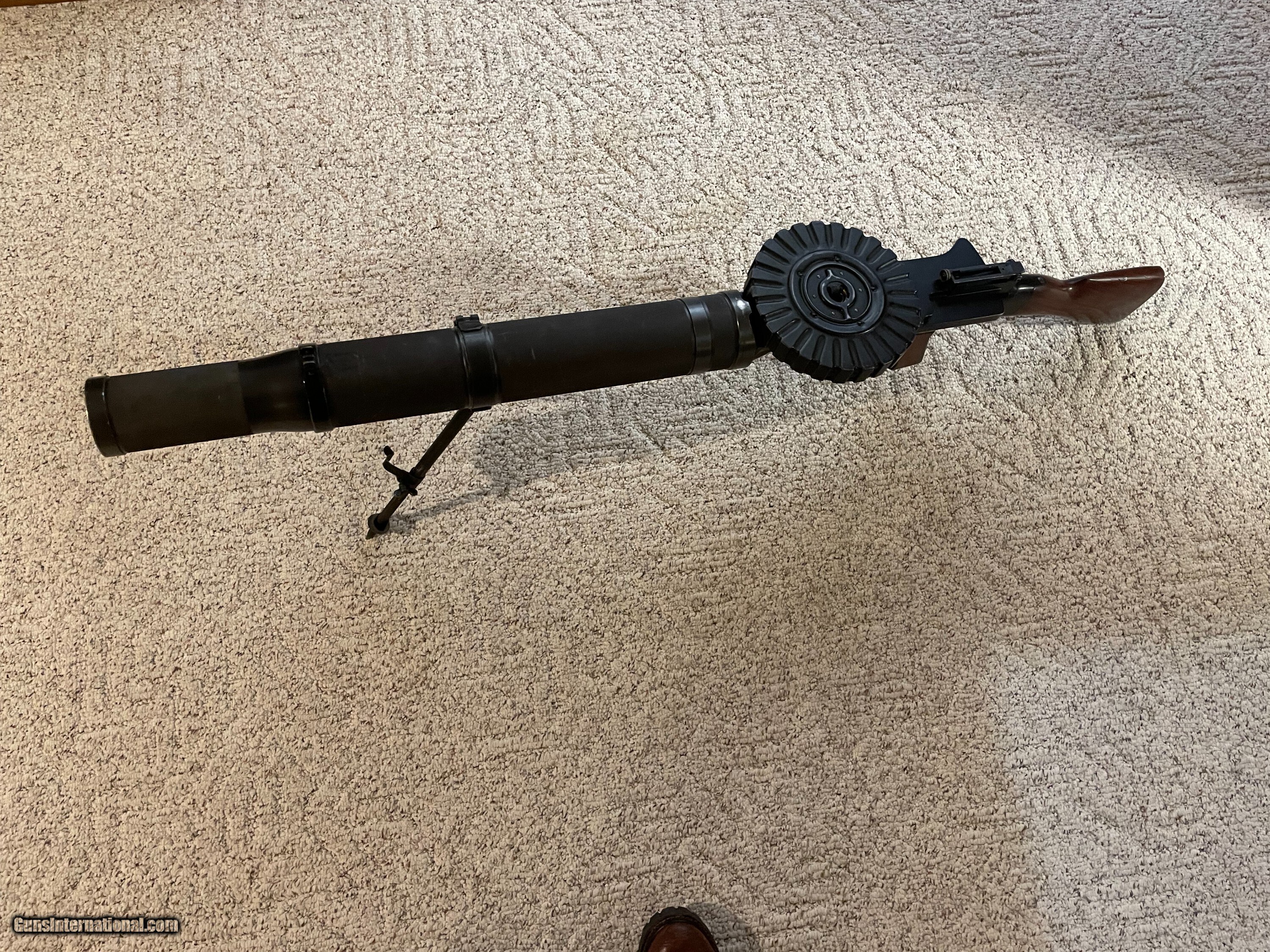 Description: Museum quality all original Lewis Gun by Savage arms in 30-06 comes with two 47 rd pans extra feed pawl and extra main spring and mount for military T&E socket. Ships in wooden crate. Very controable and accurate not a high rate of fire. You can squeeze off a rd one at the time or full auto. More Pics are available. Curio/Relic: Yes Manufacturer: Savage Model: 1917 Serial Number: 2204 Barrel Length: 26 Condition: Very Good Metal Condition: very good Wood Condition: very good Bore Condition: EXC. Price: $38,000.00 Contact Seller |