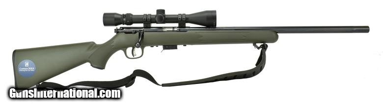 Description: Savage 93 .22 WMR caliber rifle. .22 Magnum bolt action in excellent condition with scope and heavy fluted barrel.