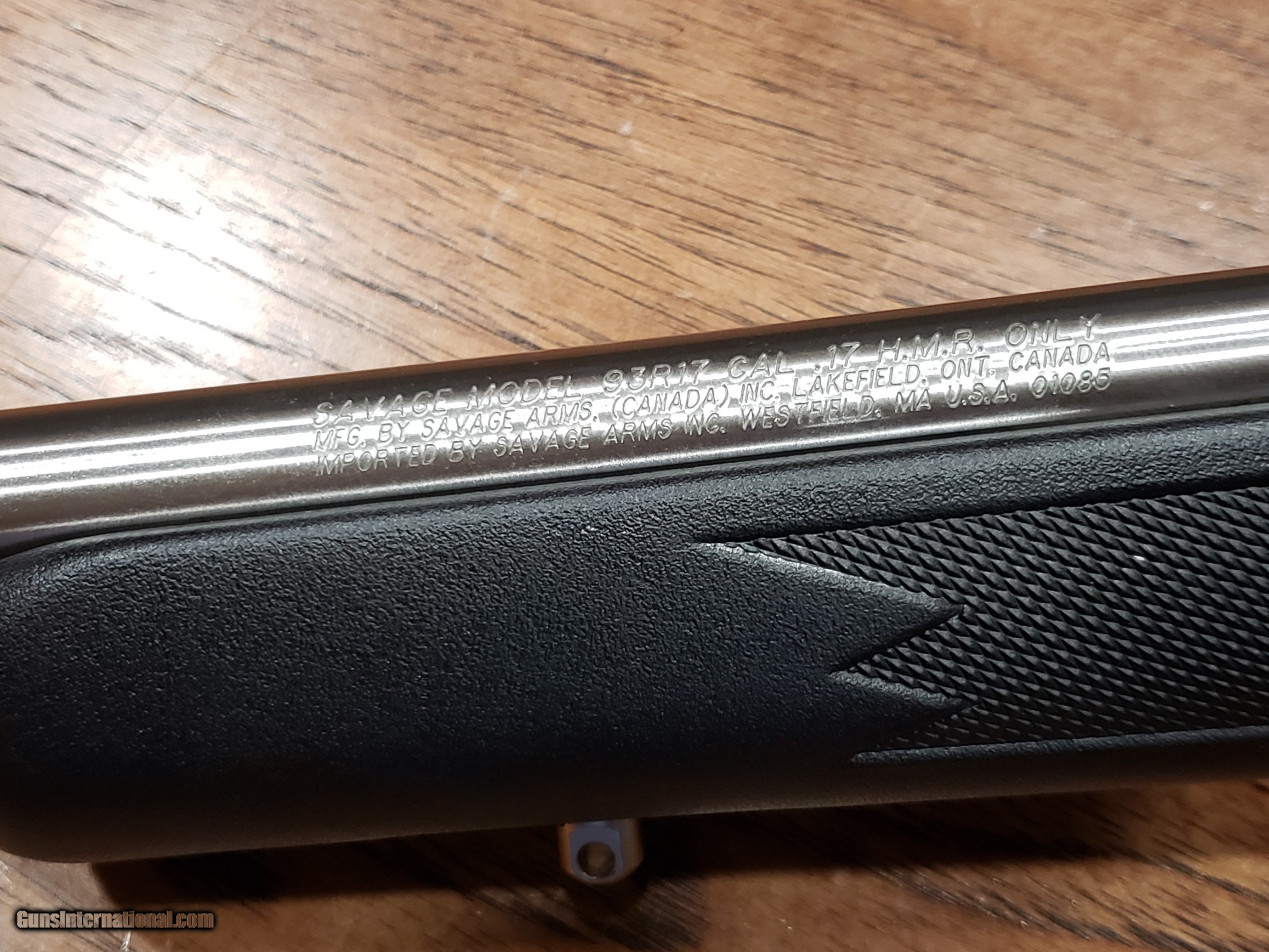 Savage 93R17 17 HMR Rifle Stainless w/ Varmint Barrel & Leupold VX-1