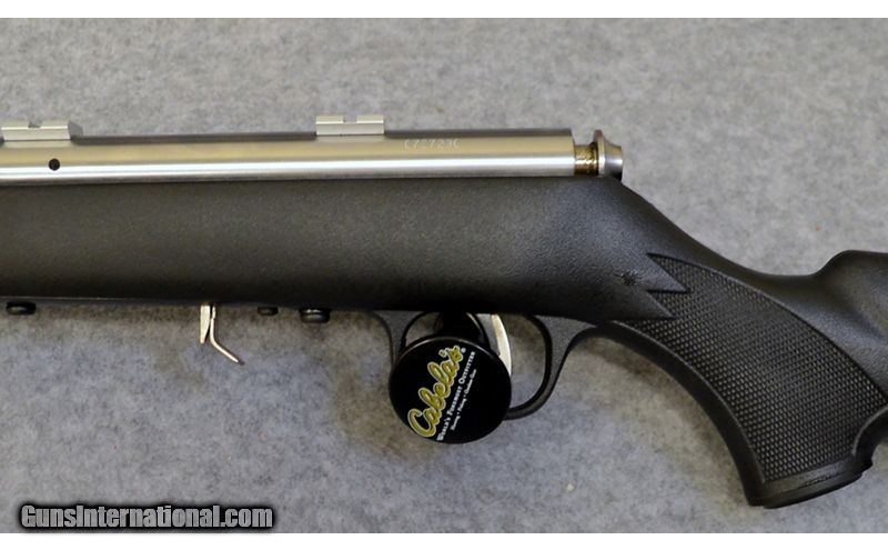 Description: This is a bolt-action Savage 93R17 rifle chambered in .17 HMR. This rifle has 20" stainless barrel. It has matching synthetic stock and fore end with fine checkering, that are in excellent condition, with minimal markings. The metal is also in excellent condition, with minimal markings. The bore is bright and shiny. This rifle comes with two 5 round magazines and a user manual. .17 HMR SOLD Chambers: Bolt-action Metal Condition: "Excellent, with minimal markings. Wood Condition: "Excellent, with minimal markings. Bore Condition: Bright and shiny. Barrels: 20" Stainless barrel. Triggers: Single curved trigger. Stock Dimensions: 13" LOP. Fore End: Black synthetic fore end with fine checkering. Butt Pad: Black hard plastic butt pad. Weight: 5 lbs Item Location: Huntsville, AL |