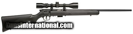 Description: NEW SAV Model 93R17 F Package .17 HMR 21 Inch Barrel Satin Blue Finish Black Synthetic Stock AccuTrigger 5 Round Includes Rings Bases and Scope Model 93R17 F Black synthetic stock with cut checkering, detachable box magazine, no sights and standard blued finish. Adjustable AccuTrigger. Package Includes rifle, scope, rings and bases.