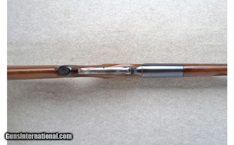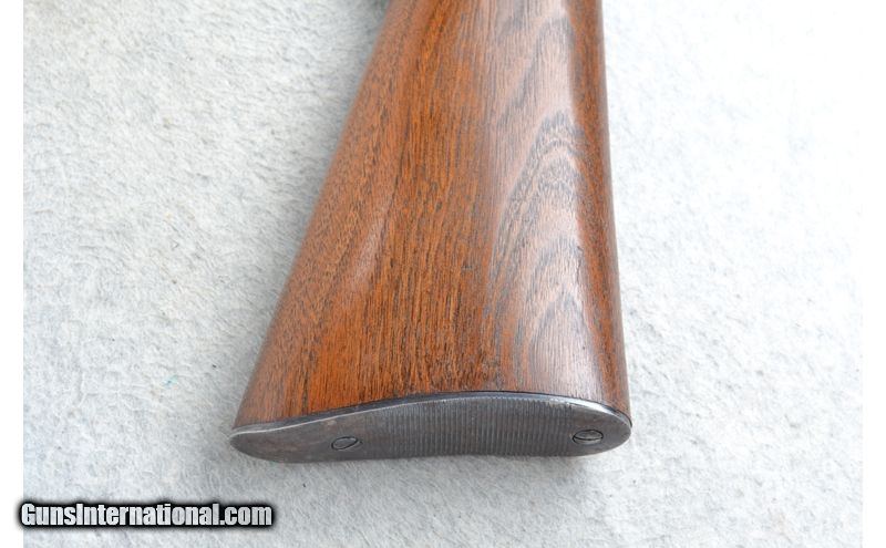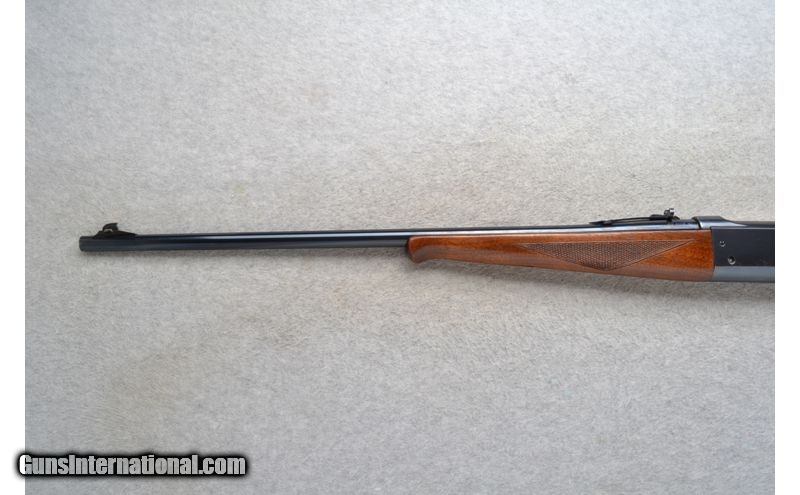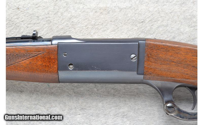 Description: This Savage Model 99 is a right hand lever action repeating rifle in .300 Savage Cal. It has a 22 inch barrel. A raised blade front sight and an adjustable buckhorn middle sight. The stock is a checkered walnut pistol grip butt with a black cap and a chec .300 Savage SOLD Chambers: Lever Action 3 round rotary magazine. Metal Condition: Good. Minor wear, handling marks and freckling. Wood Condition: Good. Handling marks and light finish wear. Barrels: 22 inch blued barrel. Triggers: Grooved. Stock Dimensions: LOP 13 inches. Fore End: Checkered grip walnut Schnabel style. Butt Pad: Checkered steel plate. Sights: Raised blade front. Adjustable buckhorn middle. Item Location: Richfield, WI |