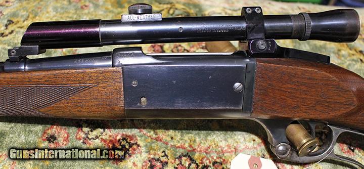 Description: Visit our GulfCoastGuns site for more! Savage 99F 243 caliber rifle – Very good condition LOP: 13" Barrel length: 22" Weight: 7lb8oz Circa 1957 Savage 99F, excellent bore, solid wood, Lyman all-weather 2-1/2 power scope, blue wear on bottom of reciever, front sight removed and cold blued, alot of hunting in this 99, ser#9223-- SOLD |